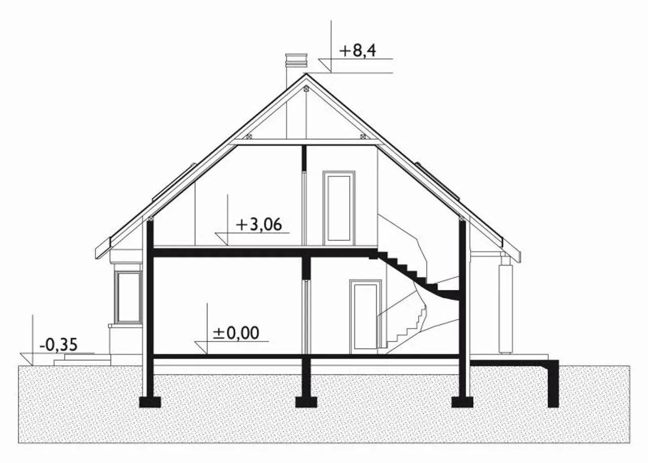 - przekroje - pokazują wszystkie elementy budynku po przecięciu go wzdłuż lub w poprzek od dachu do fundamentów tj. warstwy podłogi, stropów i dachu