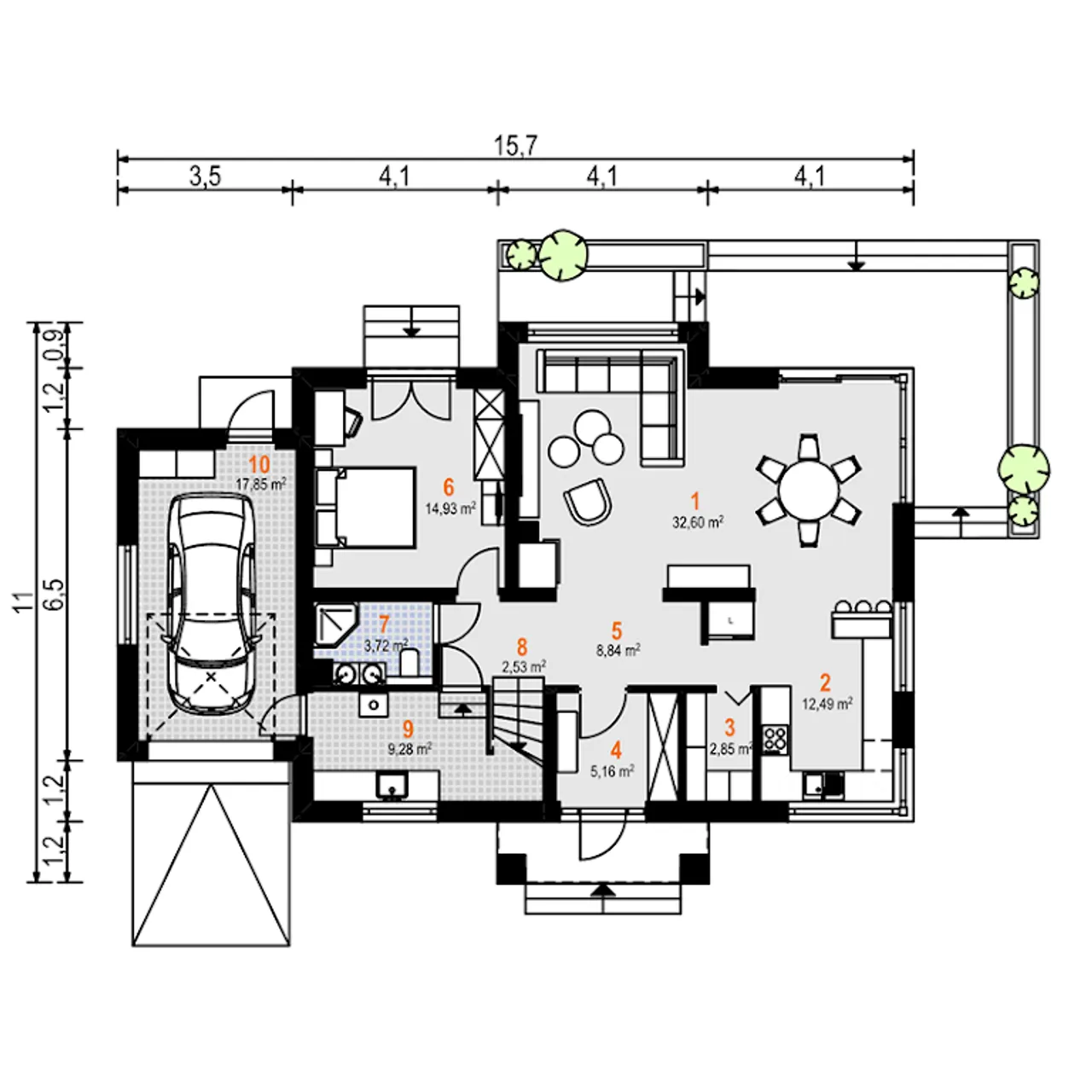 1. Pokój dzienny z jadalnią | 32,60 m² |