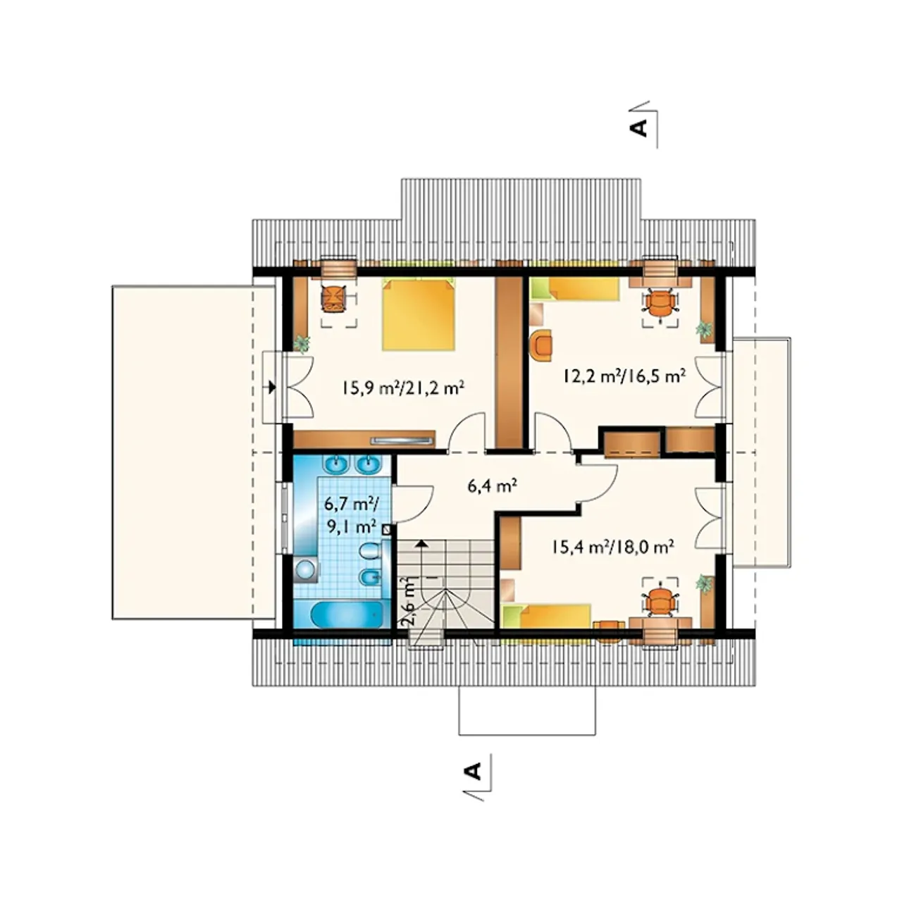 - elewacje - pokazują dokładny wygląd domu od frontu, z tyłu i z boków