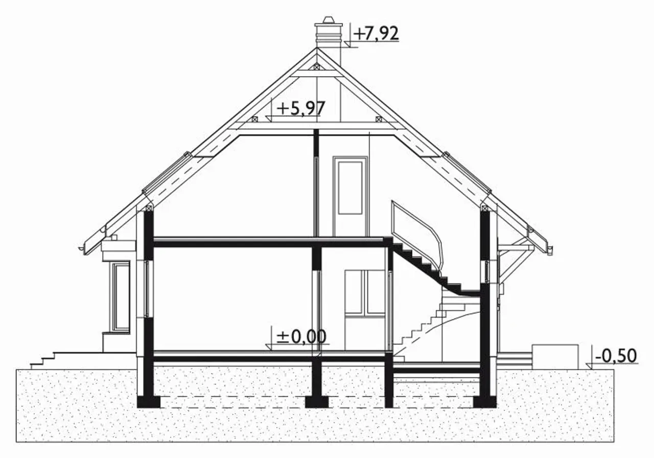 - przekroje - pokazują wszystkie elementy budynku po przecięciu go wzdłuż lub w poprzek od dachu do fundamentów tj. warstwy podłogi, stropów i dachu