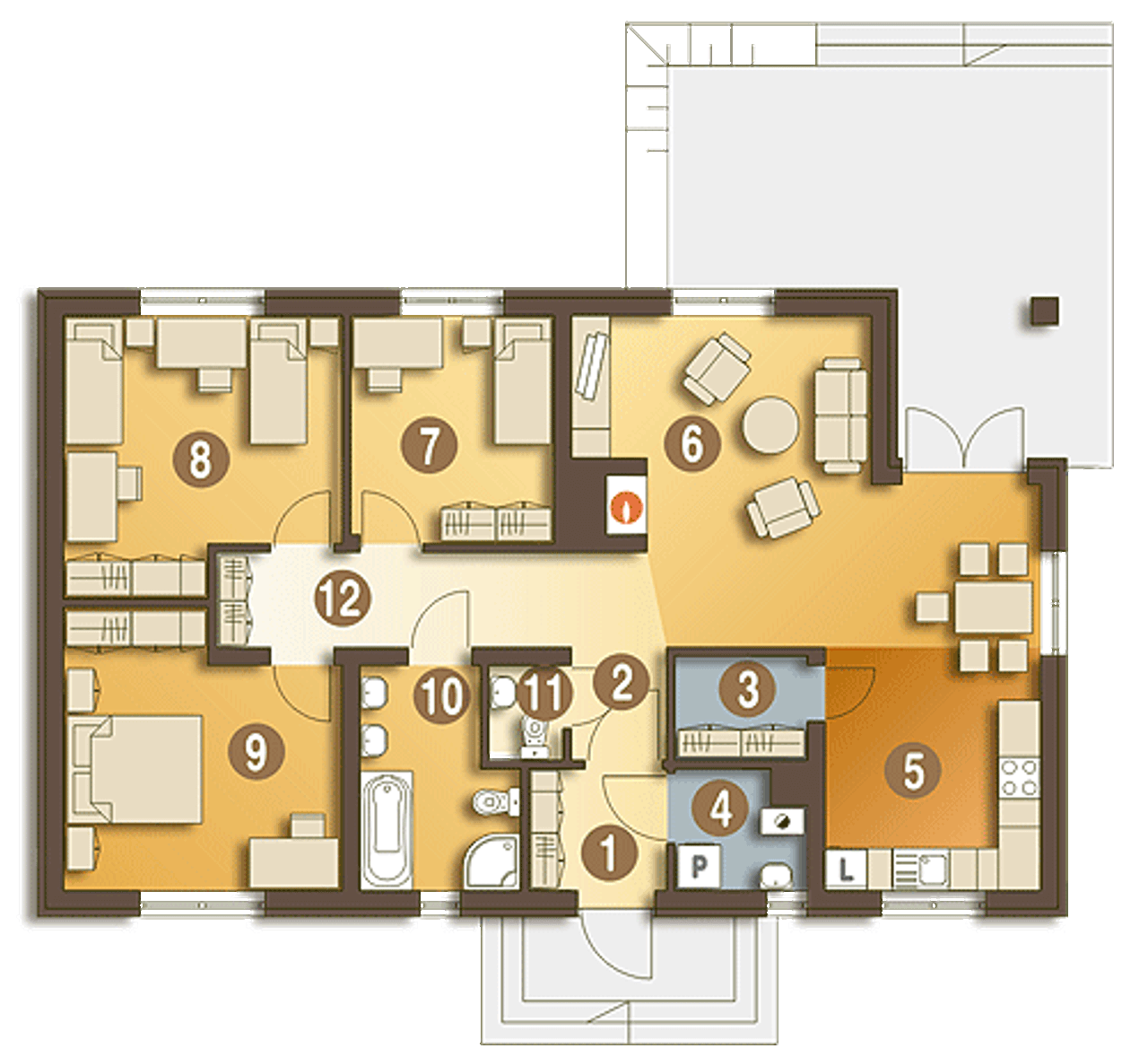 Wypełnij formularz i otrzymaj rysunki w pdf z dokładnymi wymiarami budynku i pomieszczeń (długość, szerokość, wysokość) dla projektu Filipek bez garażu B