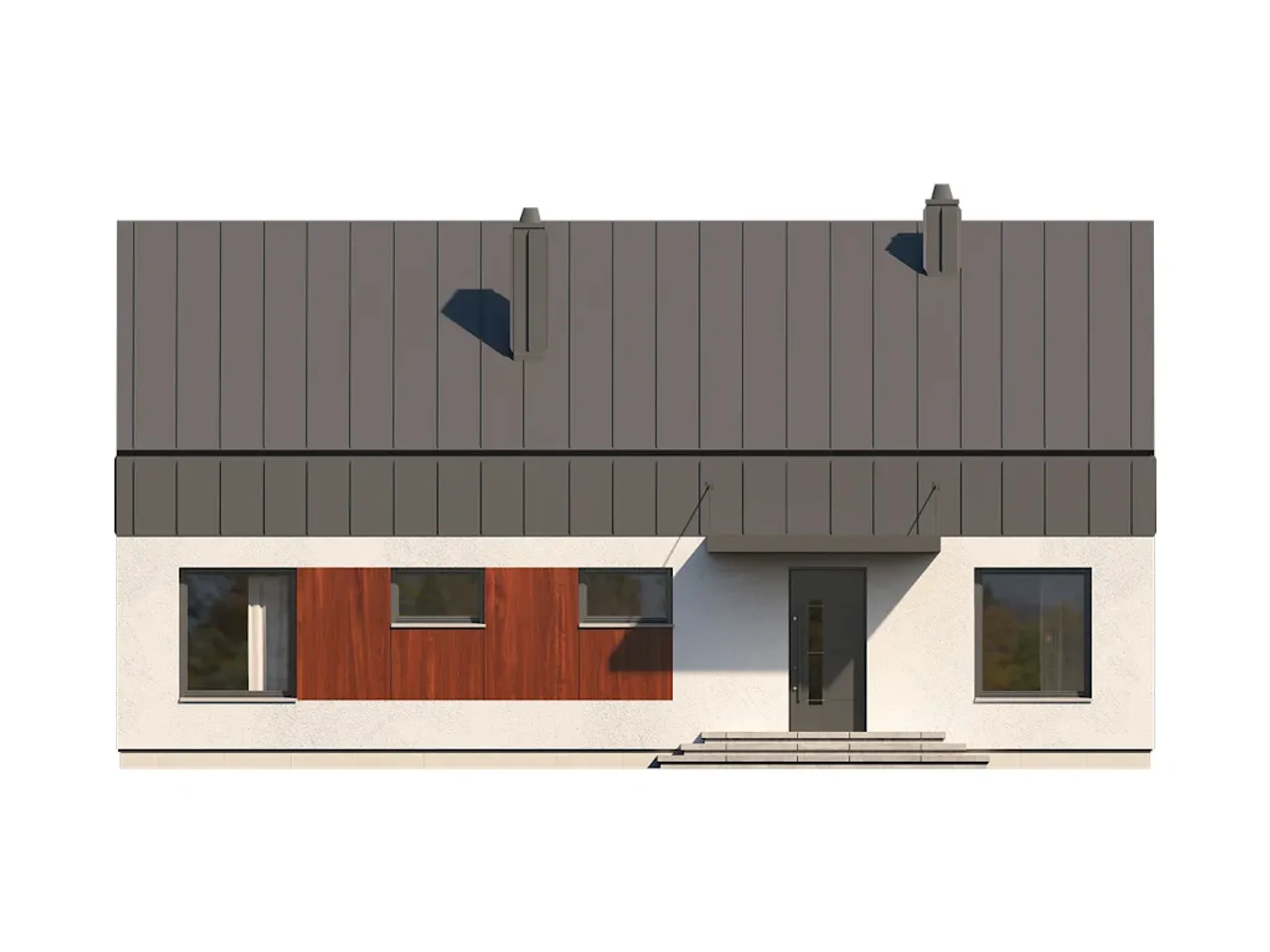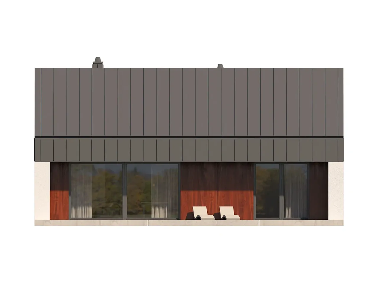 Projekt domu Fina to nowoczesna propozycja dla osób, które poszukują wygodnego i energooszczędnego domu parterowego. Prosta bryła sprawia, że projekt jest nie tylko estetyczny, ale również ekonomiczny w realizacji. Architektura opiera się na dwuspadowym dachu i efektownym wykończeniu elewacji, co wyróżnia inwestycję w każdym otoczeniu.