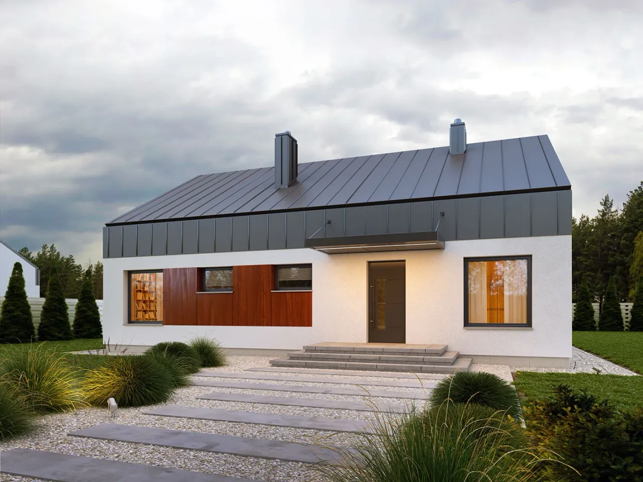 Ten dom o 4 funkcjonalnych pokojach został zaprojektowany z myślą o rodzinach, które cenią wygodę codziennego użytkowania oraz praktyczne rozwiązania. Fina perfekcyjnie łączy tradycyjne technologie i nowoczesny styl, gwarantując trwałość oraz wysoką efektywność energetyczną.