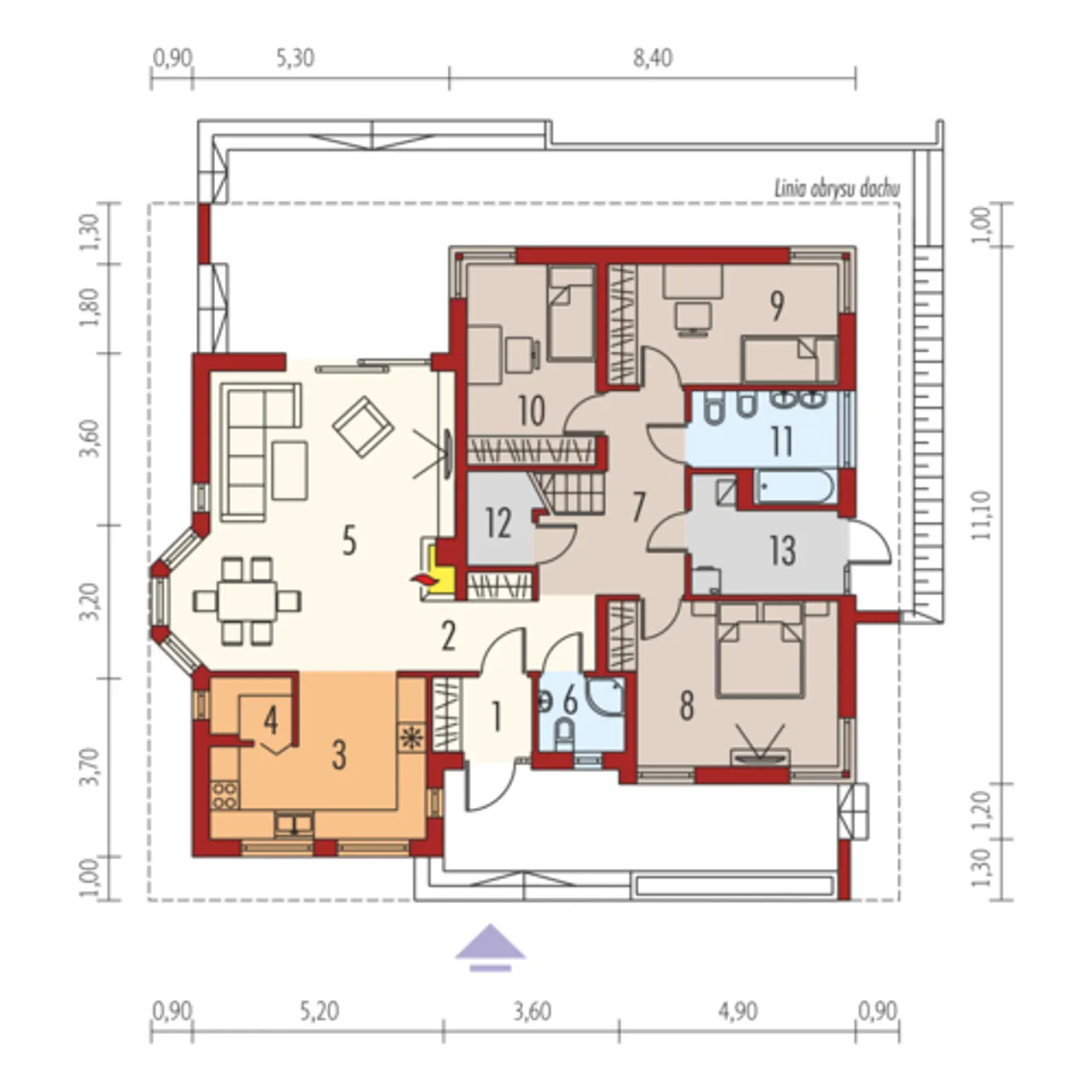 Wypełnij formularz i otrzymaj rysunki w pdf z dokładnymi wymiarami budynku i pomieszczeń (długość, szerokość, wysokość) dla projektu Flori II 30 stopni