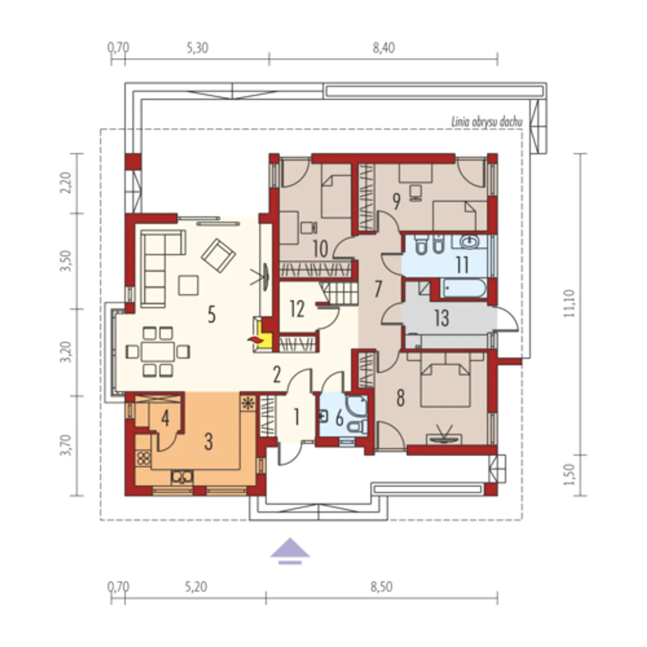 Wypełnij formularz i otrzymaj rysunki w pdf z dokładnymi wymiarami budynku i pomieszczeń (długość, szerokość, wysokość) dla projektu Flori III 30 stopni