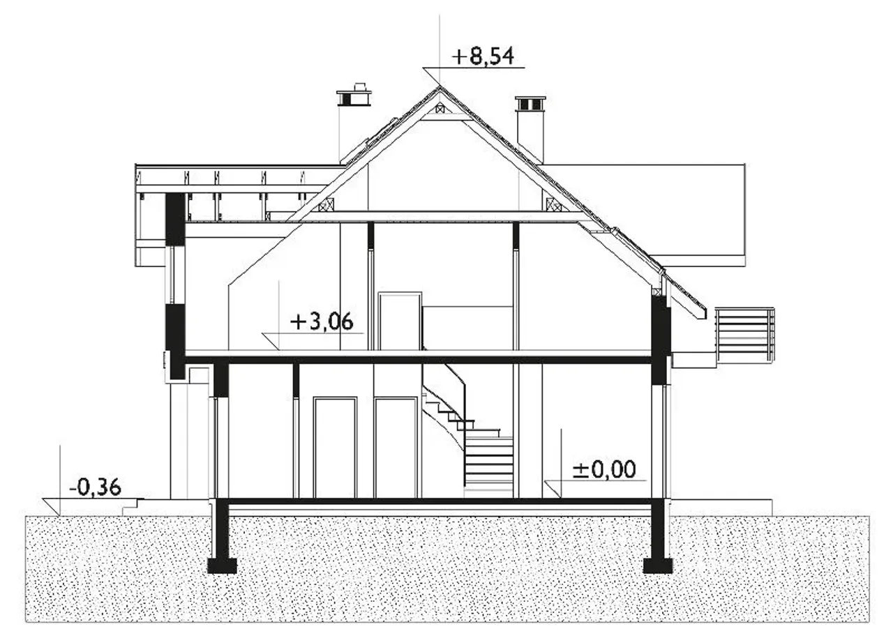 - przekroje - pokazują wszystkie elementy budynku po przecięciu go wzdłuż lub w poprzek od dachu do fundamentów tj. warstwy podłogi, stropów i dachu