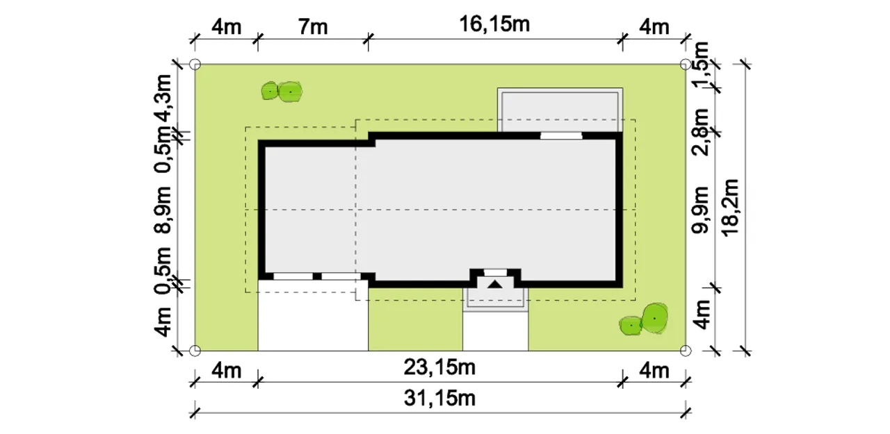Wypełnij formularz i otrzymaj rysunki w pdf z dokładnymi wymiarami budynku i pomieszczeń (długość, szerokość, wysokość) dla projektu Fundamentalis I G2