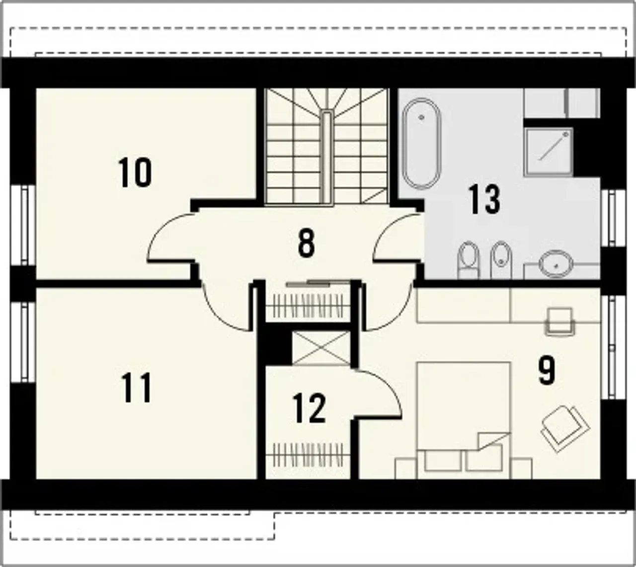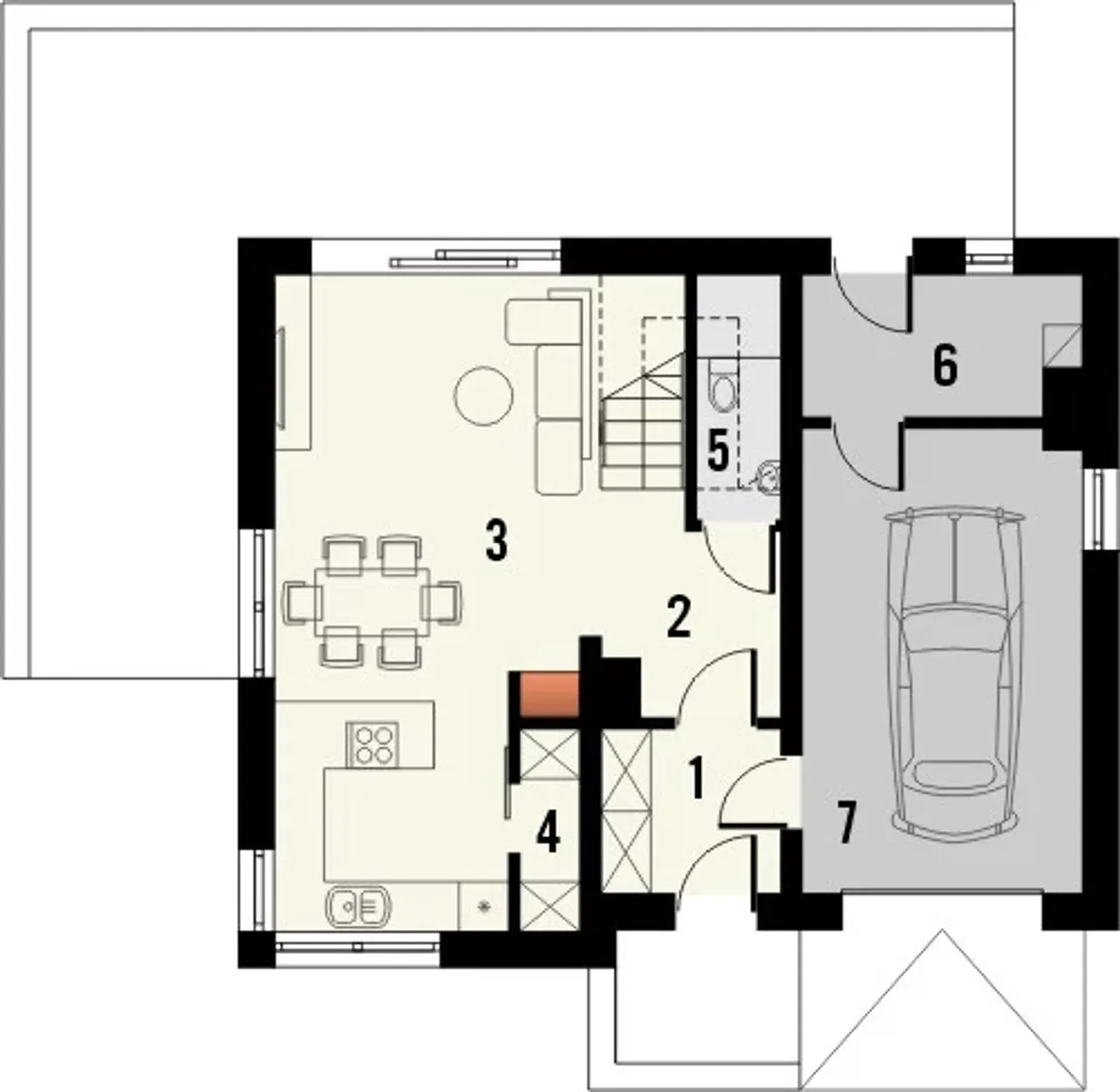 Projekt domu Funky przyciąga uwagę nowoczesnym wyglądem i dobrze przemyślanym układem pomieszczeń. Przestronne wnętrza oraz duże okna zapewniają doskonałe doświetlenie. W projekcie uwzględniono także taras, co umożliwia korzystanie z przestrzeni na świeżym powietrzu. Atrakcyjna elewacja oraz dach nadają budynkowi elegancji.