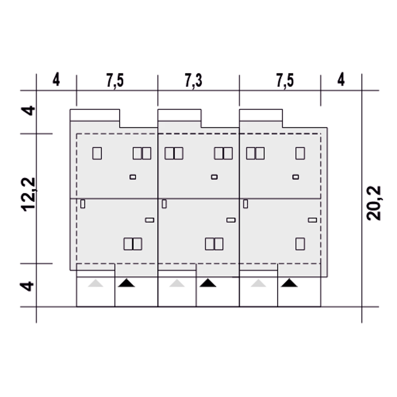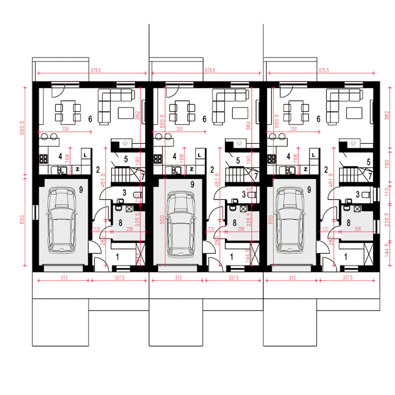 Wypełnij formularz i otrzymaj rysunki w pdf z dokładnymi wymiarami budynku i pomieszczeń (długość, szerokość, wysokość) dla projektu Głuszec III z garażem 1-st. szeregówka A-SZ