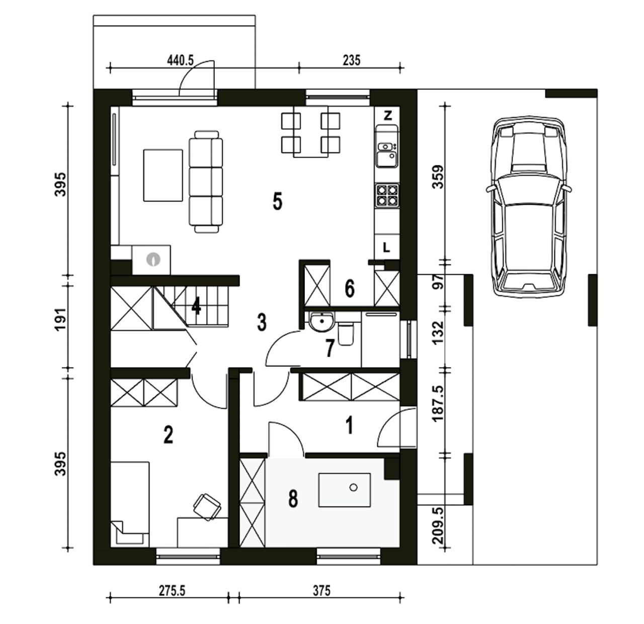 Wypełnij formularz i otrzymaj rysunki w pdf z dokładnymi wymiarami budynku i pomieszczeń (długość, szerokość, wysokość) dla projektu Głuszec z wiatą A1