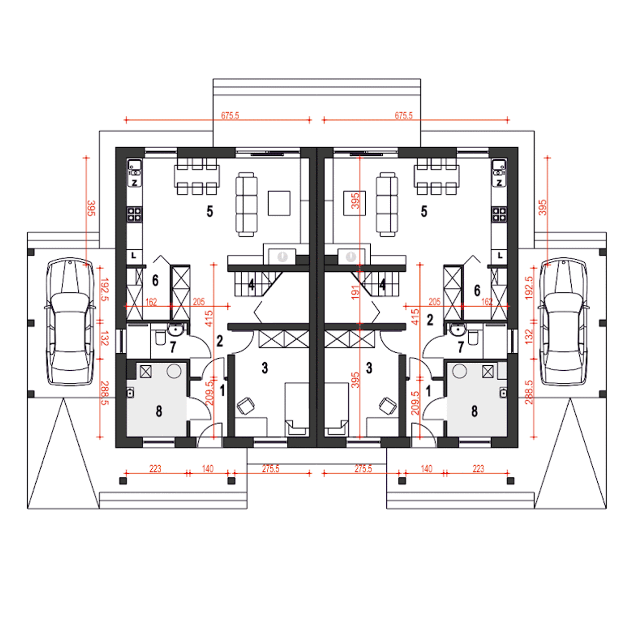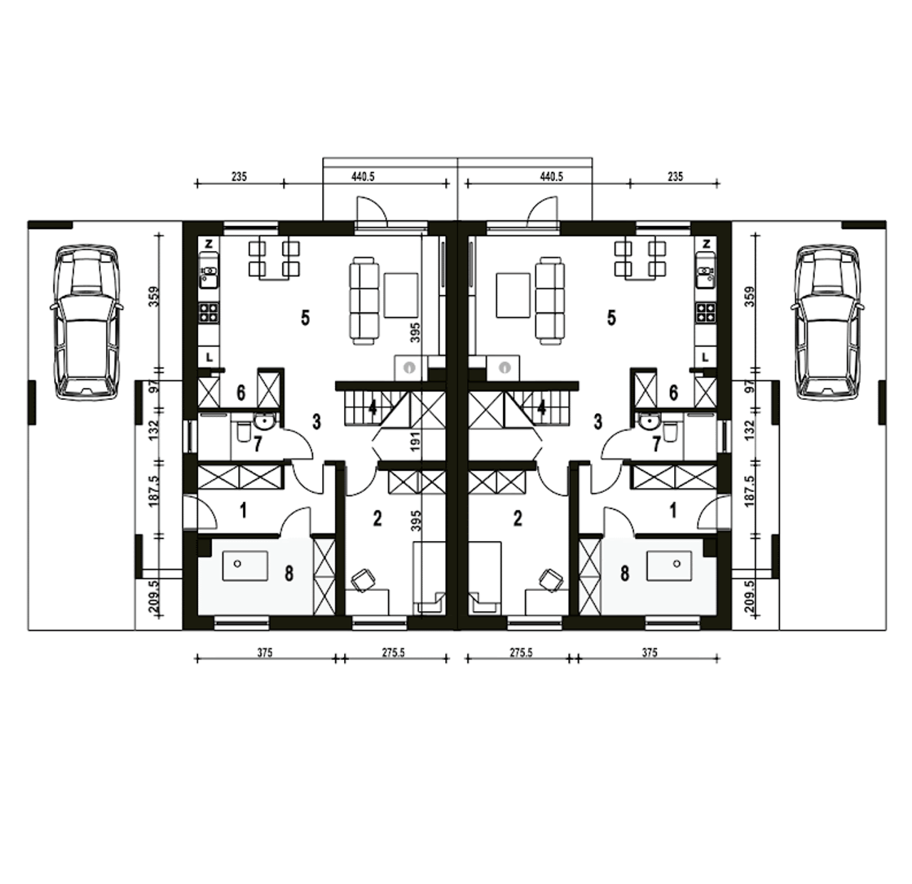 Głuszec z garażem 1-st. bliźniak A-BL1