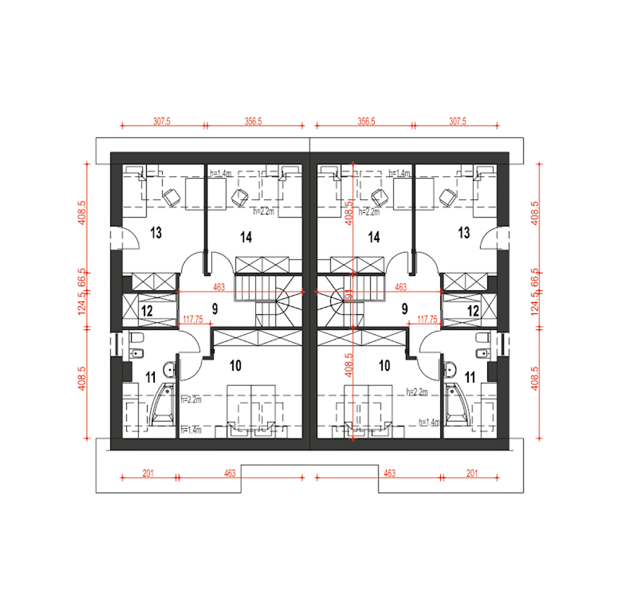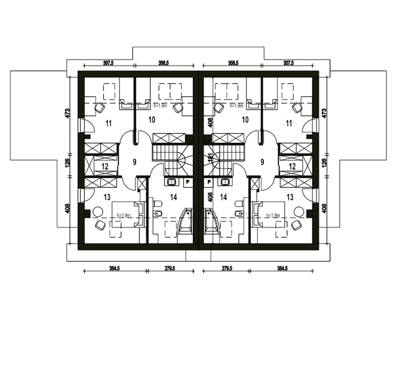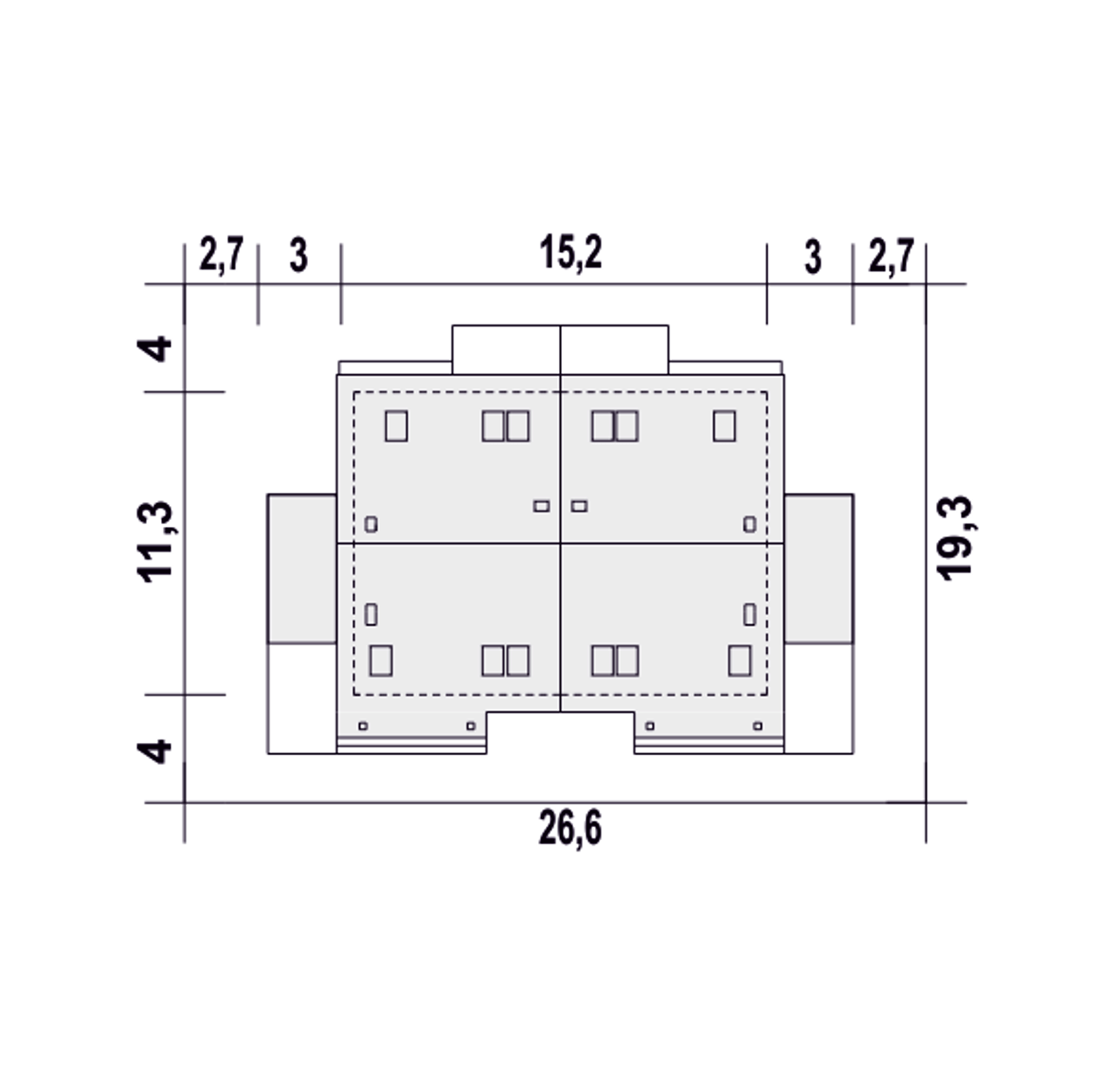 Wypełnij formularz i otrzymaj rysunki w pdf z dokładnymi wymiarami budynku i pomieszczeń (długość, szerokość, wysokość) dla projektu Głuszec z wiatą bliźniak A1-BL