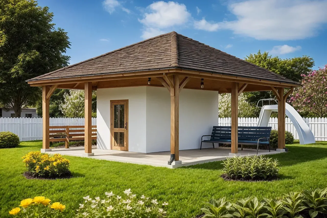 | Przestrzeń z pom. gospodarczym, z wiatą/altaną |