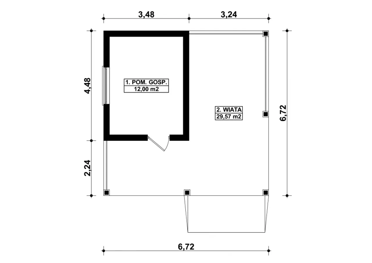 | Szerokość budynku 6.72 m |