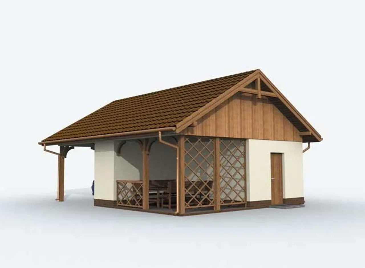 | Przestrzeń z pom. gospodarczym, z wiatą/altaną |