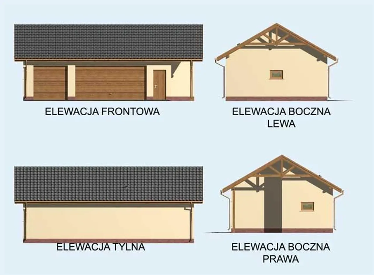 G156 szkielet drewniany garaż trzystanowiskowy z pomieszczeniem gospodarczym