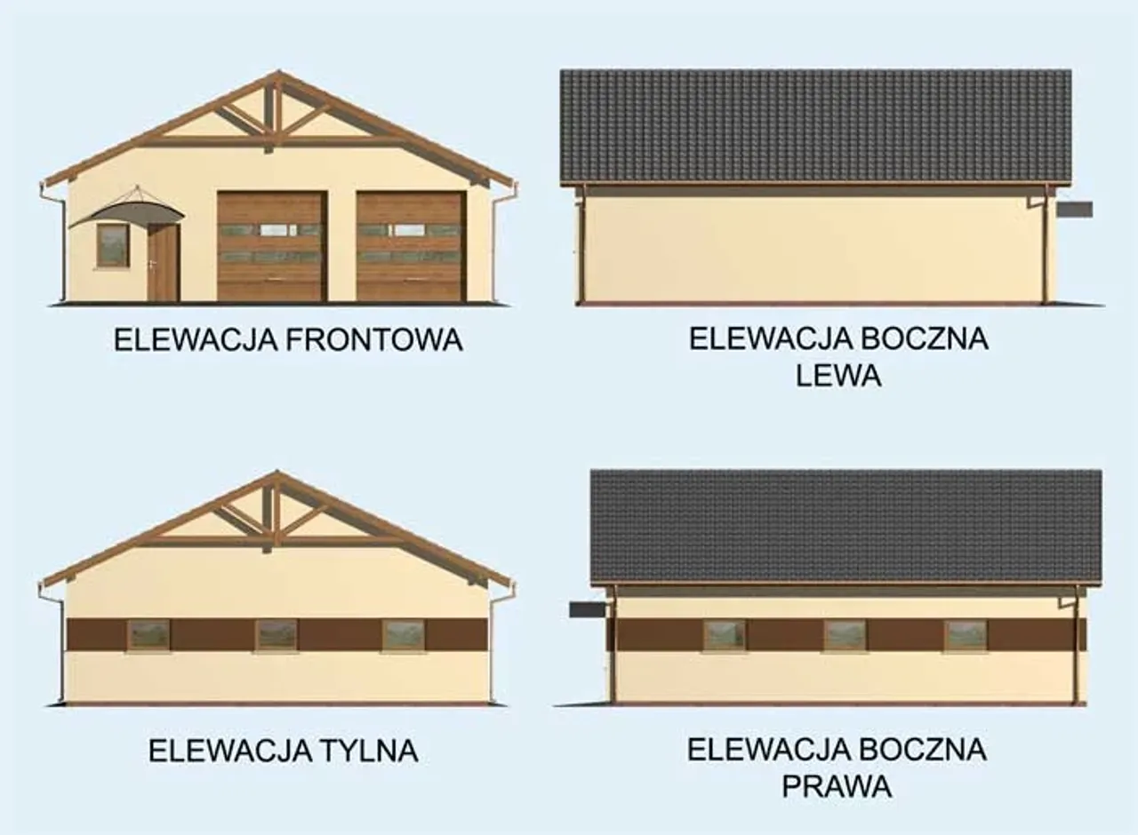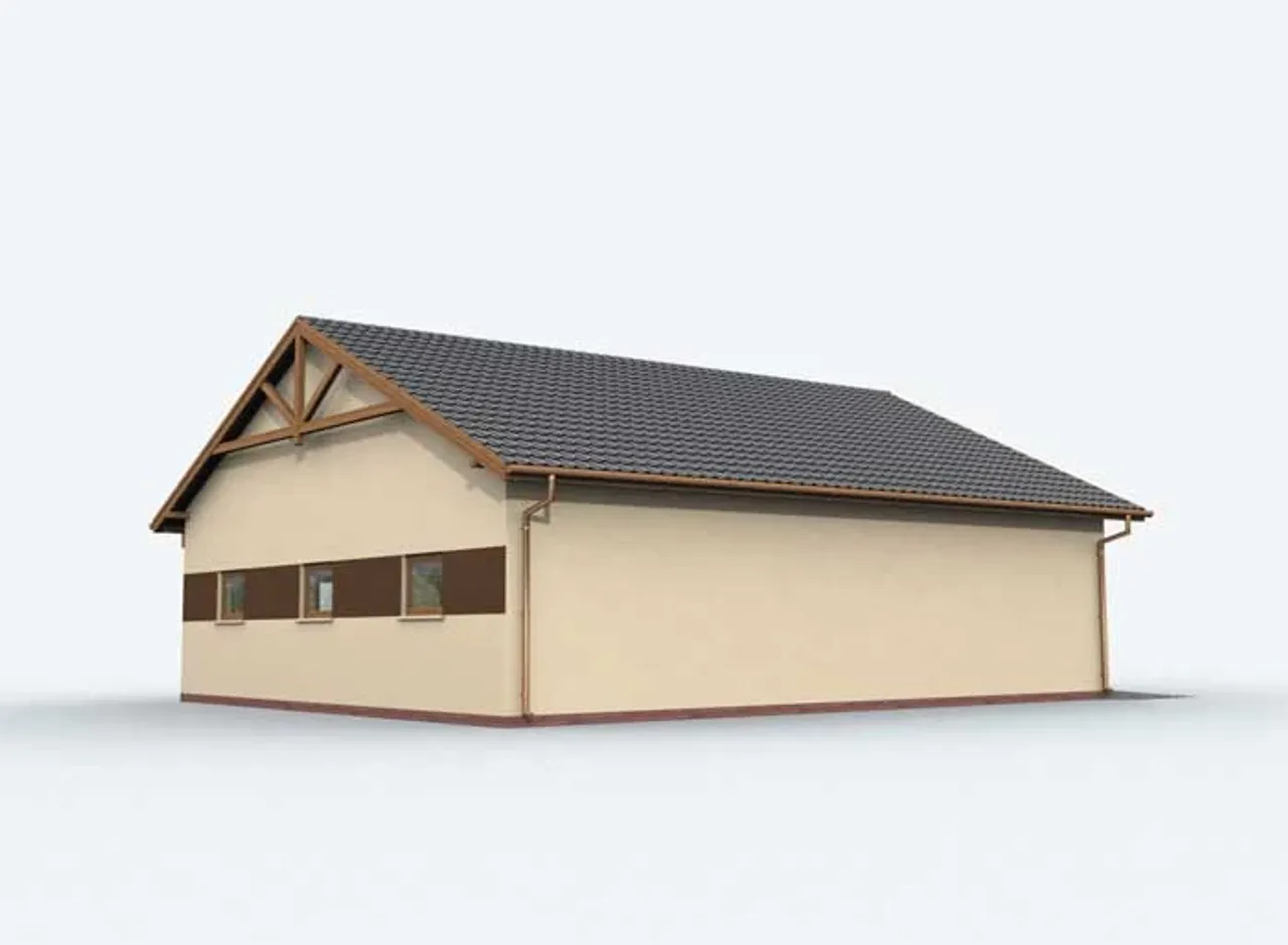 Wypełnij formularz i otrzymaj rysunki w pdf z dokładnymi wymiarami budynku i pomieszczeń (długość, szerokość, wysokość) dla projektu G163a Szkielet Drewniany Garaż Czterostanowiskowy Z Pomieszczeniami Gospodarczymi