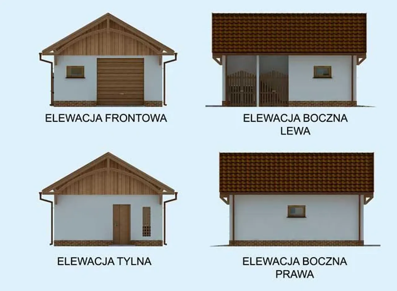 Altana 3x3m, Zadaszenie 2,34x1,2m (typ 1,typ 2, typ 3), Drewutnia 2,78x1,44 m, Domek ogrodowy 2,78x1,44 m, Garaż Jodła 6,01x3,76 m, Garaż, Sosna 6,01x6,27 m, Ambona myśliwska (typ 1,typ 2), Wiata Grillowa 5x5 m, Wiata Grillowa 6x4 m, Brama (typ 1, typ 2, typ 3), Szoposzklarnia.