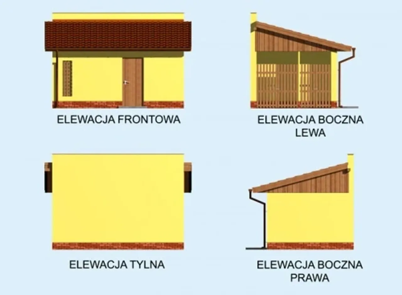 Altana 3x3m, Zadaszenie 2,34x1,2m (typ 1,typ 2, typ 3), Drewutnia 2,78x1,44 m, Domek ogrodowy 2,78x1,44 m, Garaż Jodła 6,01x3,76 m, Garaż, Sosna 6,01x6,27 m, Ambona myśliwska (typ 1,typ 2), Wiata Grillowa 5x5 m, Wiata Grillowa 6x4 m, Brama (typ 1, typ 2, typ 3), Szoposzklarnia.