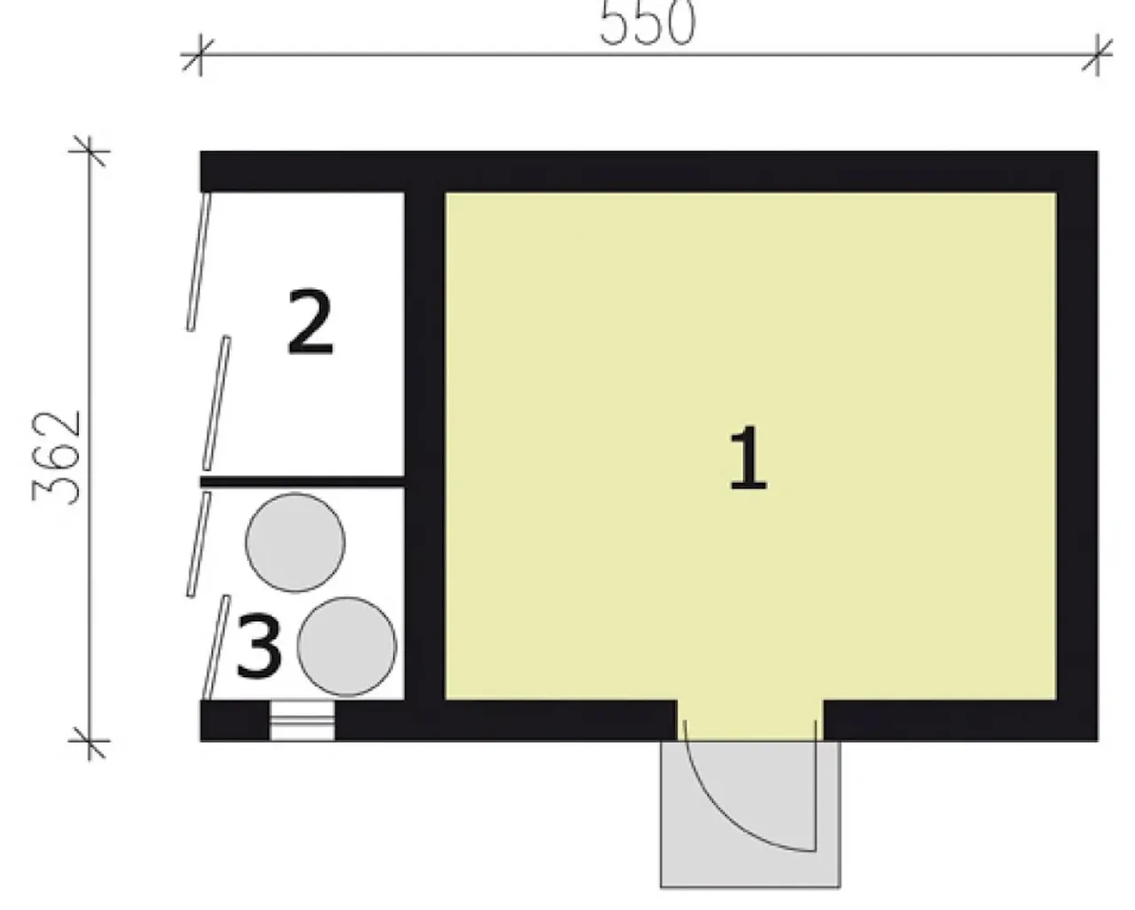 Wypełnij formularz i otrzymaj rysunki w pdf z dokładnymi wymiarami budynku i pomieszczeń (długość, szerokość, wysokość) dla projektu G182 Budynek gospodarczy