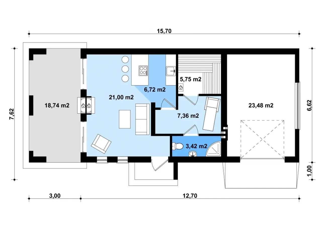 Wypełnij formularz i otrzymaj rysunki w pdf z dokładnymi wymiarami budynku i pomieszczeń (długość, szerokość, wysokość) dla projektu G183 - Budynek rekreacyjny