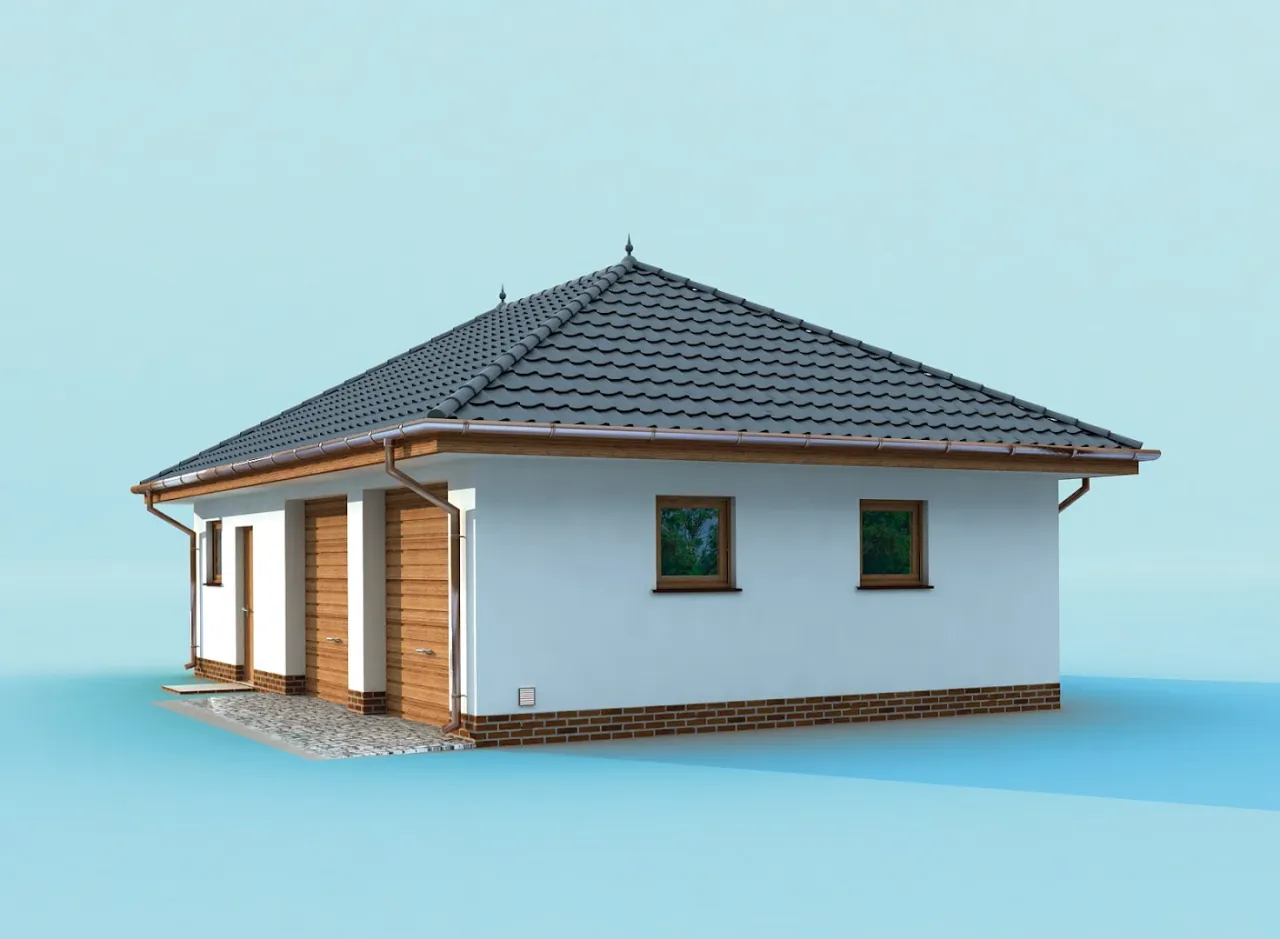 Wypełnij formularz i otrzymaj rysunki w pdf z dokładnymi wymiarami budynku i pomieszczeń (długość, szerokość, wysokość) dla projektu G195 szkielet drewniany garaż dwustanowiskowy z pomieszczeniem gospodarczym