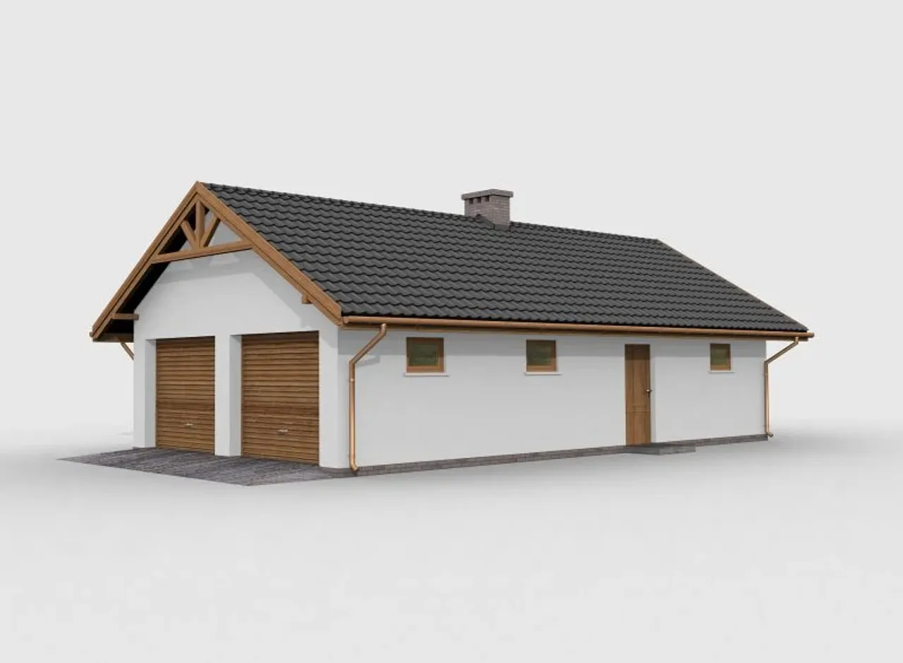 Wypełnij formularz i otrzymaj rysunki w pdf z dokładnymi wymiarami budynku i pomieszczeń (długość, szerokość, wysokość) dla projektu G1m szkielet drewniany, garaż dwustanowiskowy z pomieszczeniem gospodarczym