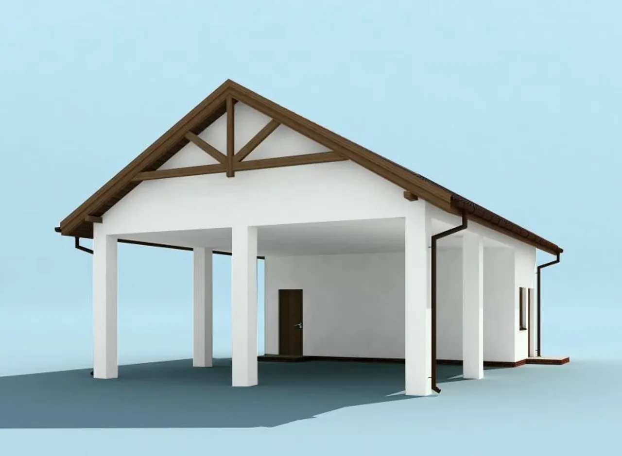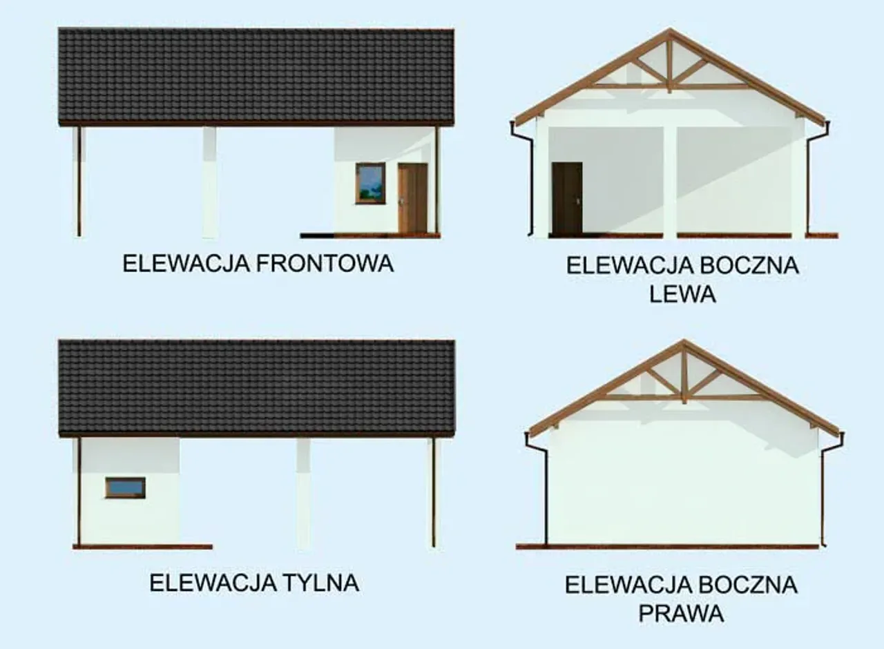Wypełnij formularz i otrzymaj rysunki w pdf z dokładnymi wymiarami budynku i pomieszczeń (długość, szerokość, wysokość) dla projektu G211 wiata garażowa, szkielet drewniany