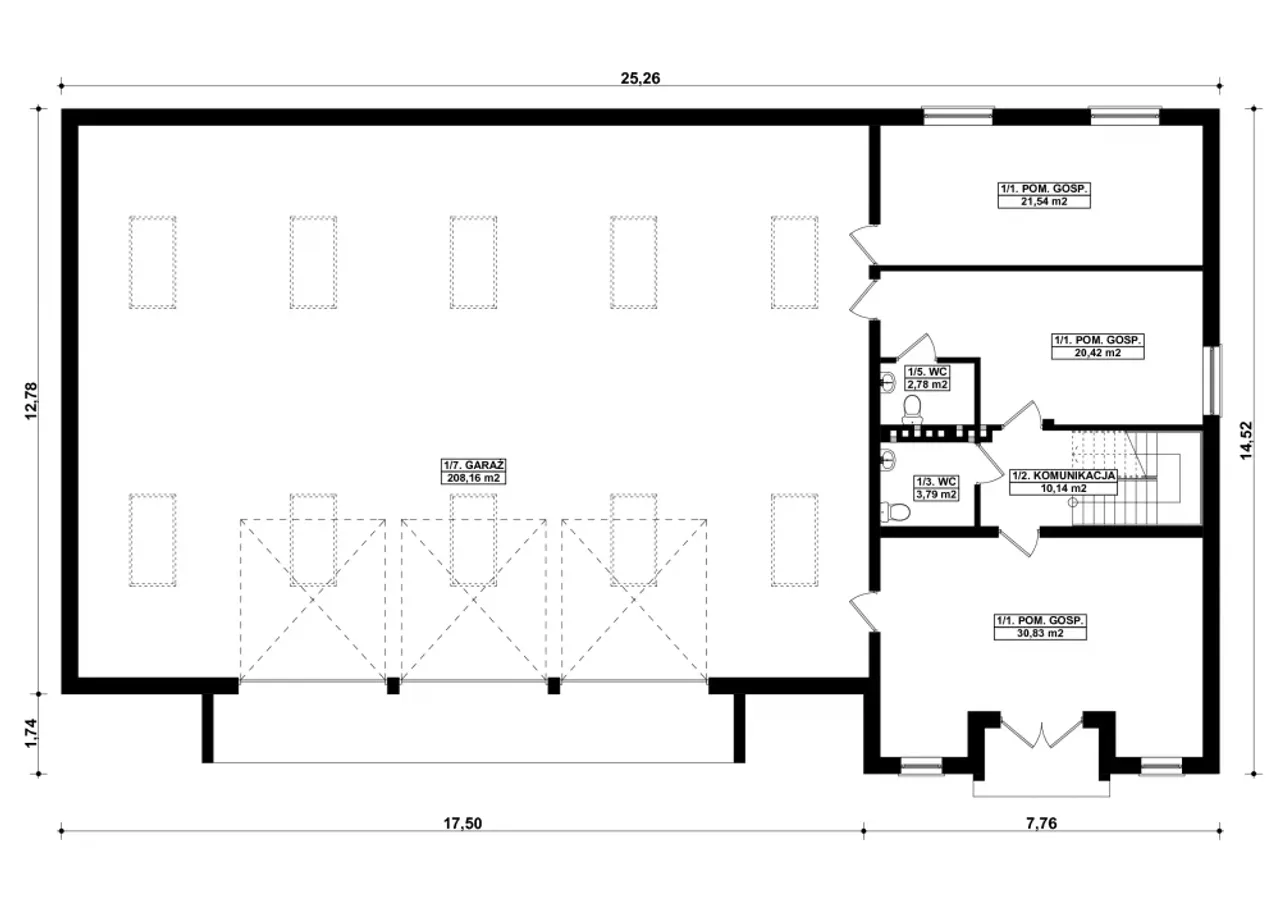 Wypełnij formularz i otrzymaj rysunki w pdf z dokładnymi wymiarami budynku i pomieszczeń (długość, szerokość, wysokość) dla projektu G213 - Budynek garażowo-gospodarczy