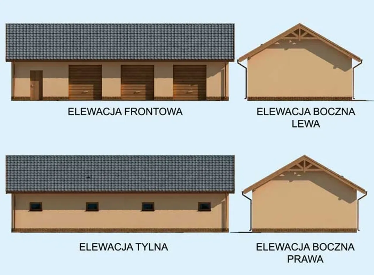 Wypełnij formularz i otrzymaj rysunki w pdf z dokładnymi wymiarami budynku i pomieszczeń (długość, szerokość, wysokość) dla projektu G217 szkielet drewniany garaż trzystanowiskowy z pomieszczeniami gospodarczymi