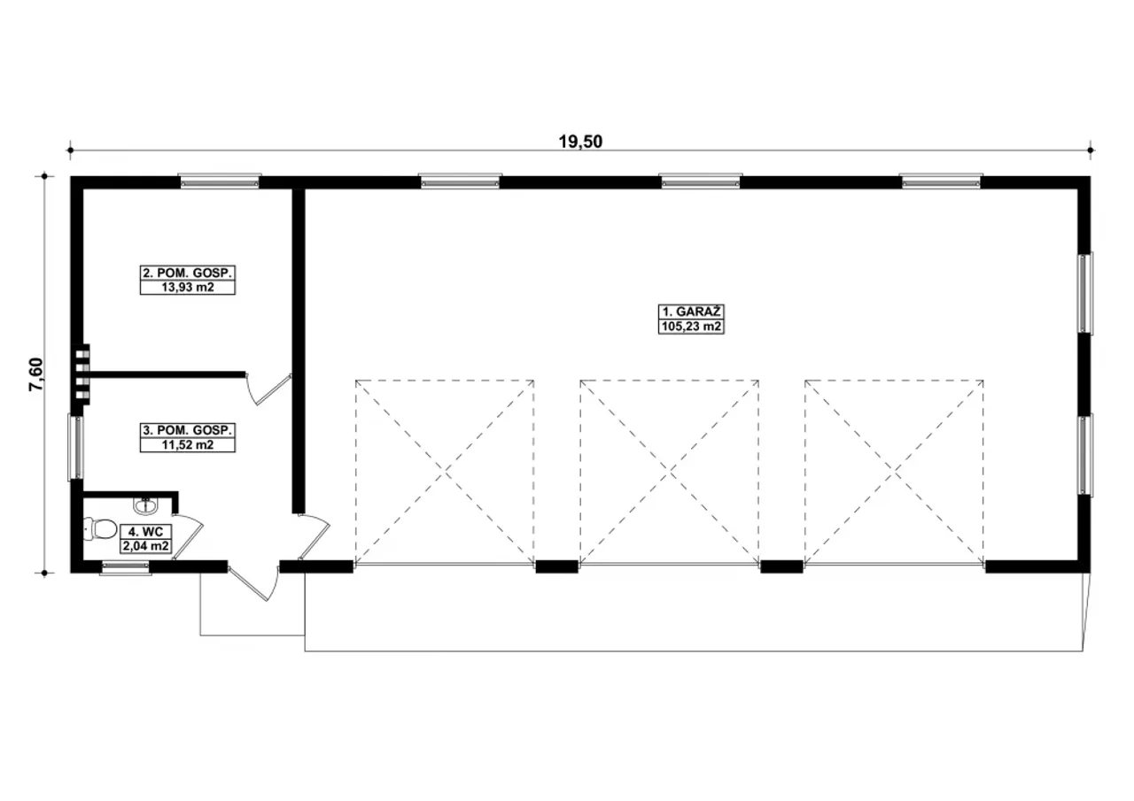 | Długość budynku 7.6 m |