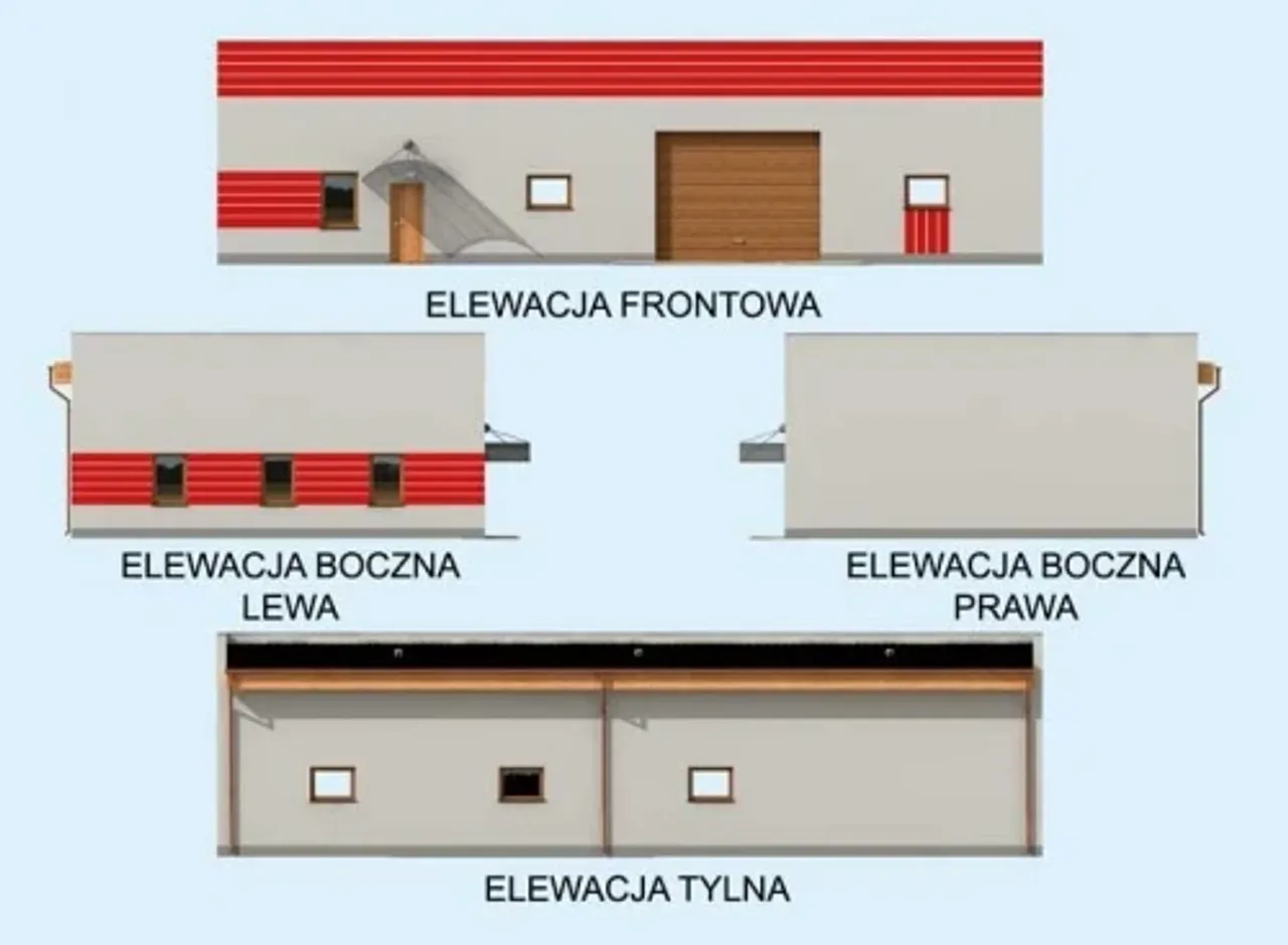 Altana 3x3m, Zadaszenie 2,34x1,2m (typ 1,typ 2, typ 3), Drewutnia 2,78x1,44 m, Domek ogrodowy 2,78x1,44 m, Garaż Jodła 6,01x3,76 m, Garaż, Sosna 6,01x6,27 m, Ambona myśliwska (typ 1,typ 2), Wiata Grillowa 5x5 m, Wiata Grillowa 6x4 m, Brama (typ 1, typ 2, typ 3), Szoposzklarnia.