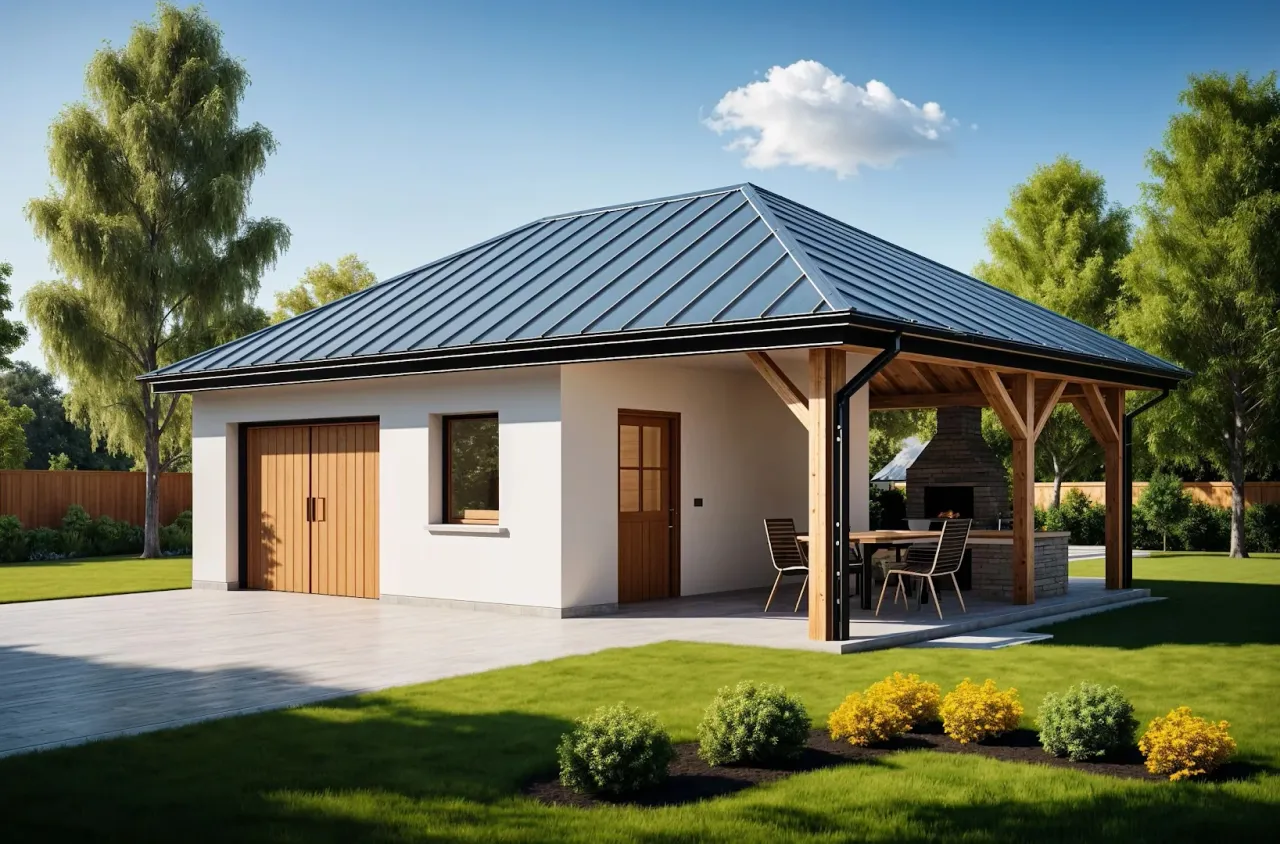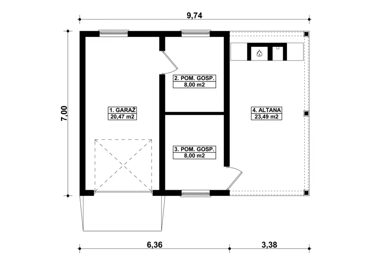 | Przestrzeń z pom. gospodarczym, z wiatą/altaną |