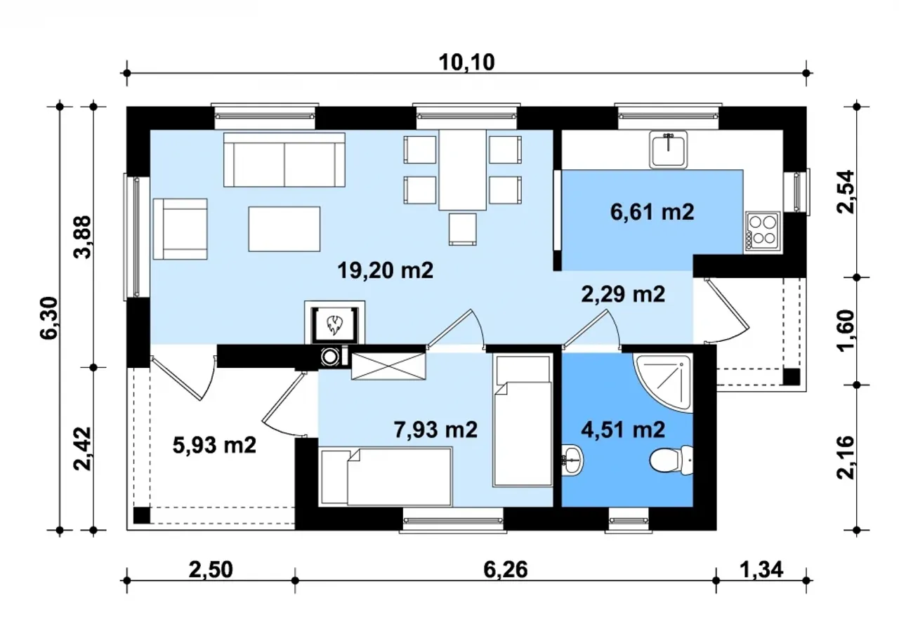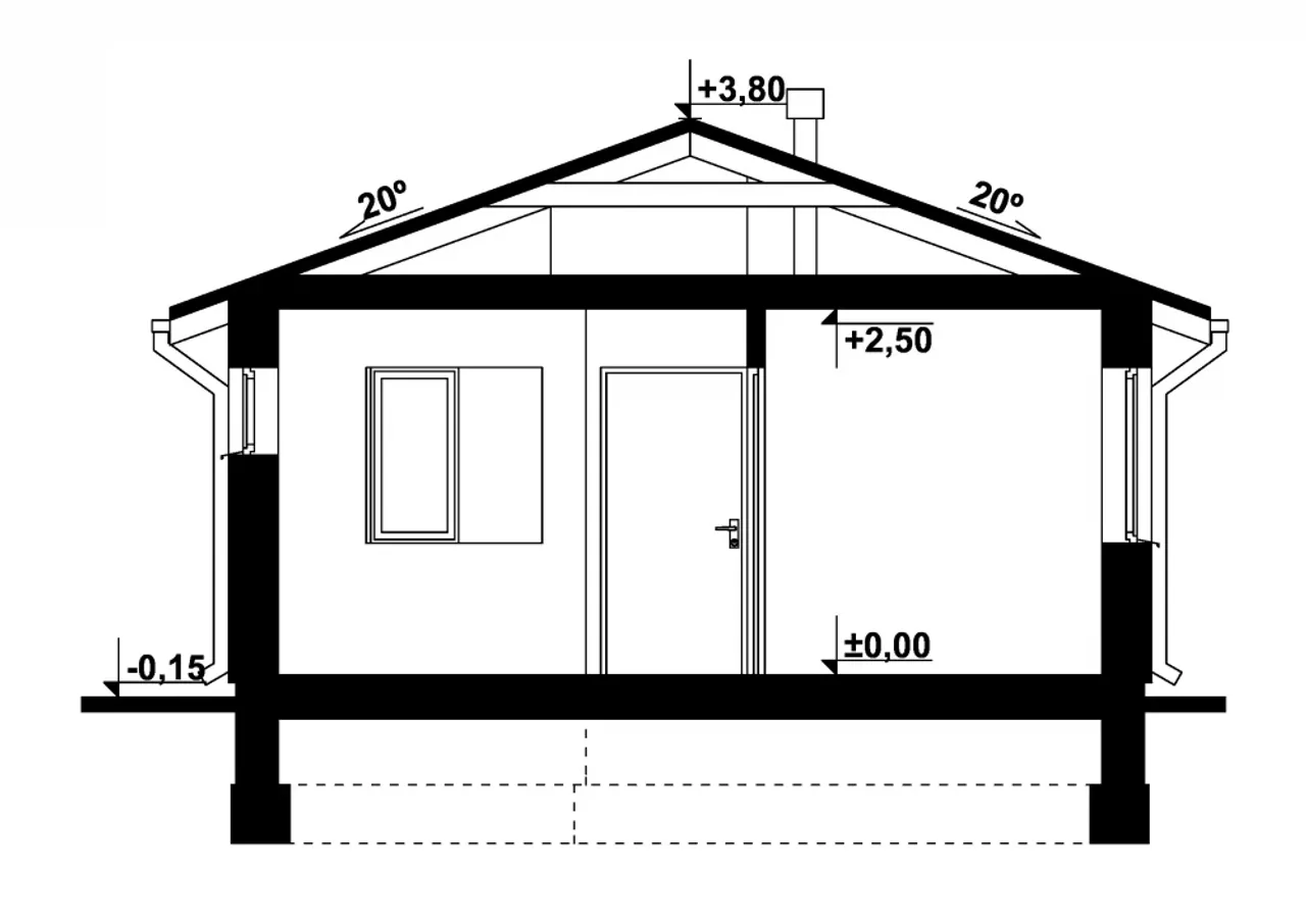 Wypełnij formularz i otrzymaj rysunki w pdf z dokładnymi wymiarami budynku i pomieszczeń (długość, szerokość, wysokość) dla projektu G250 - Budynek rekreacji indywidualnej