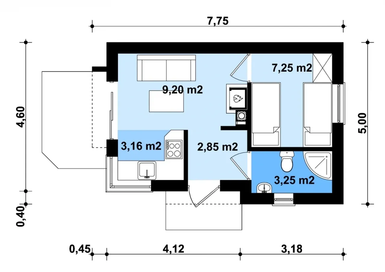 Wypełnij formularz i otrzymaj rysunki w pdf z dokładnymi wymiarami budynku i pomieszczeń (długość, szerokość, wysokość) dla projektu G254 - Budynek rekreacji indywidualnej