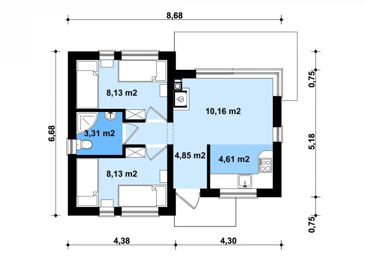 Wypełnij formularz i otrzymaj rysunki w pdf z dokładnymi wymiarami budynku i pomieszczeń (długość, szerokość, wysokość) dla projektu G255 - Budynek rekreacji indywidualnej