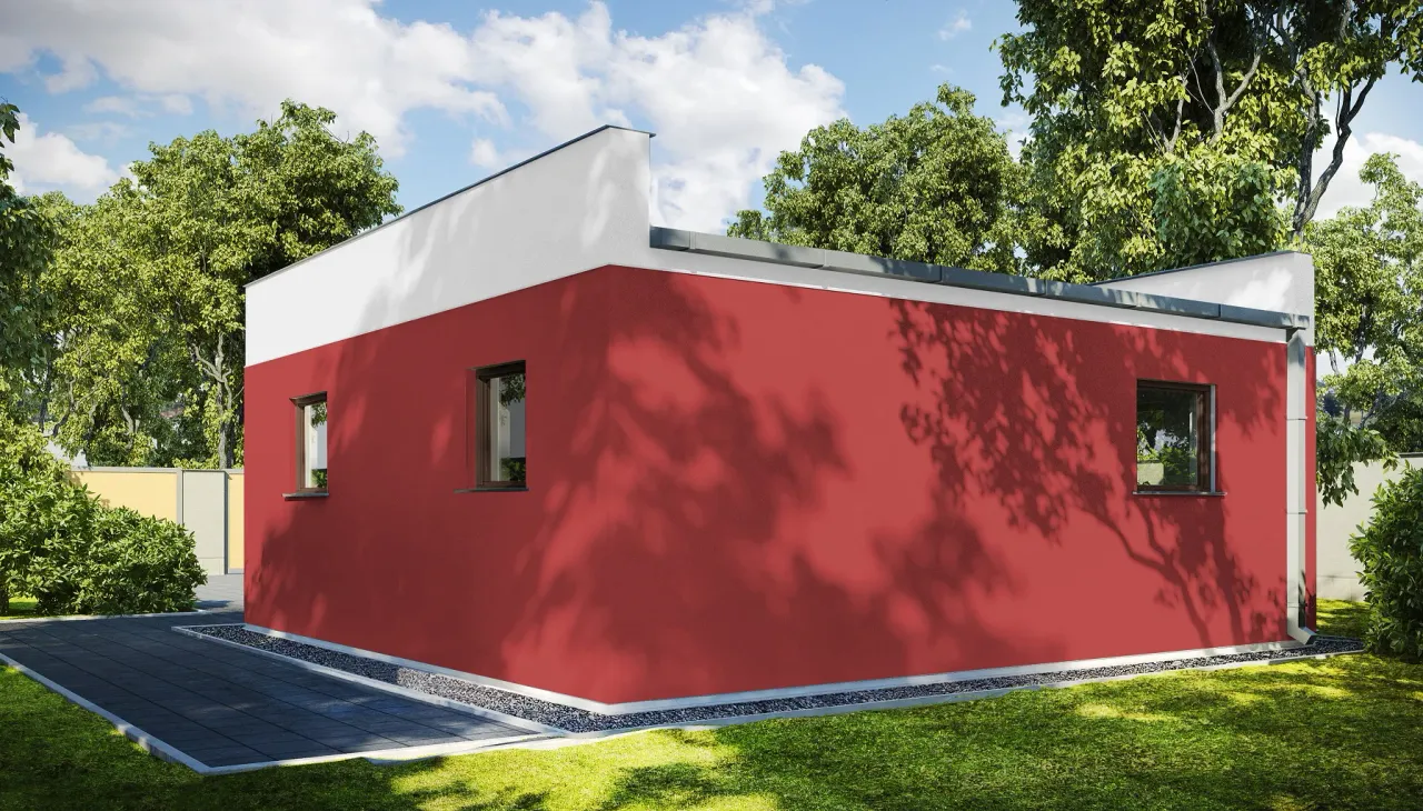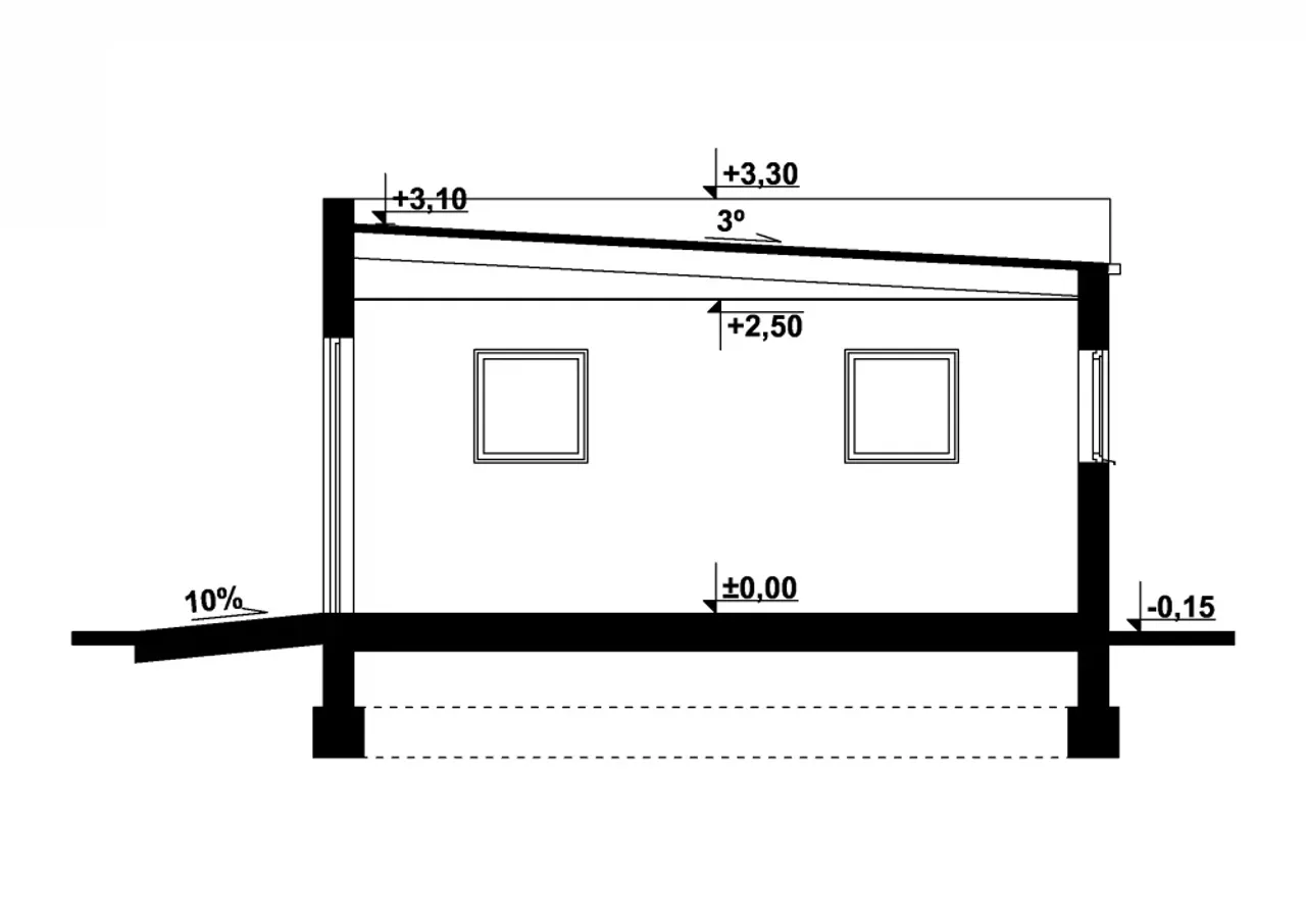 • Więźba dachowa: jednospadowa, drewniana, pokryta blachą na rąbek.