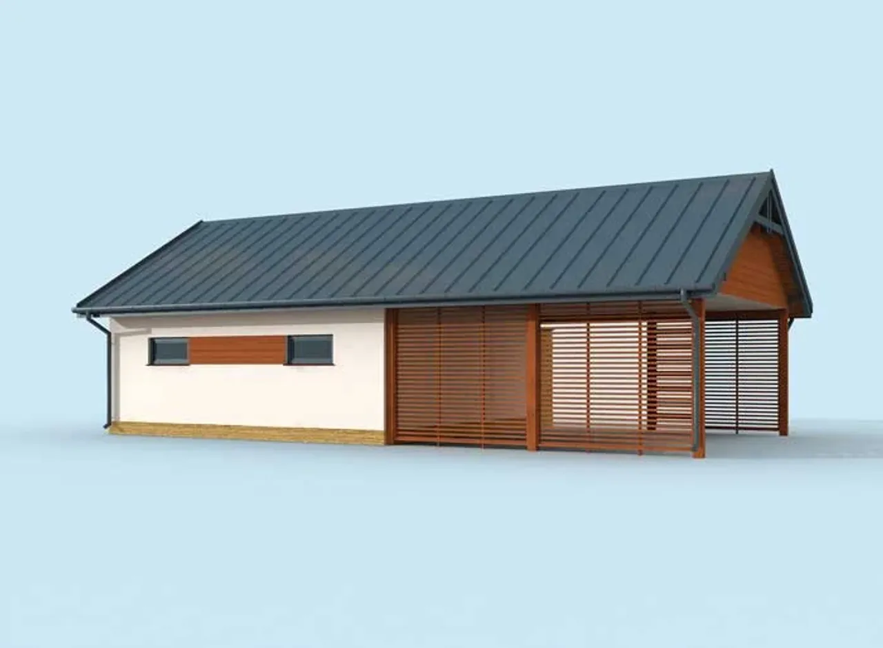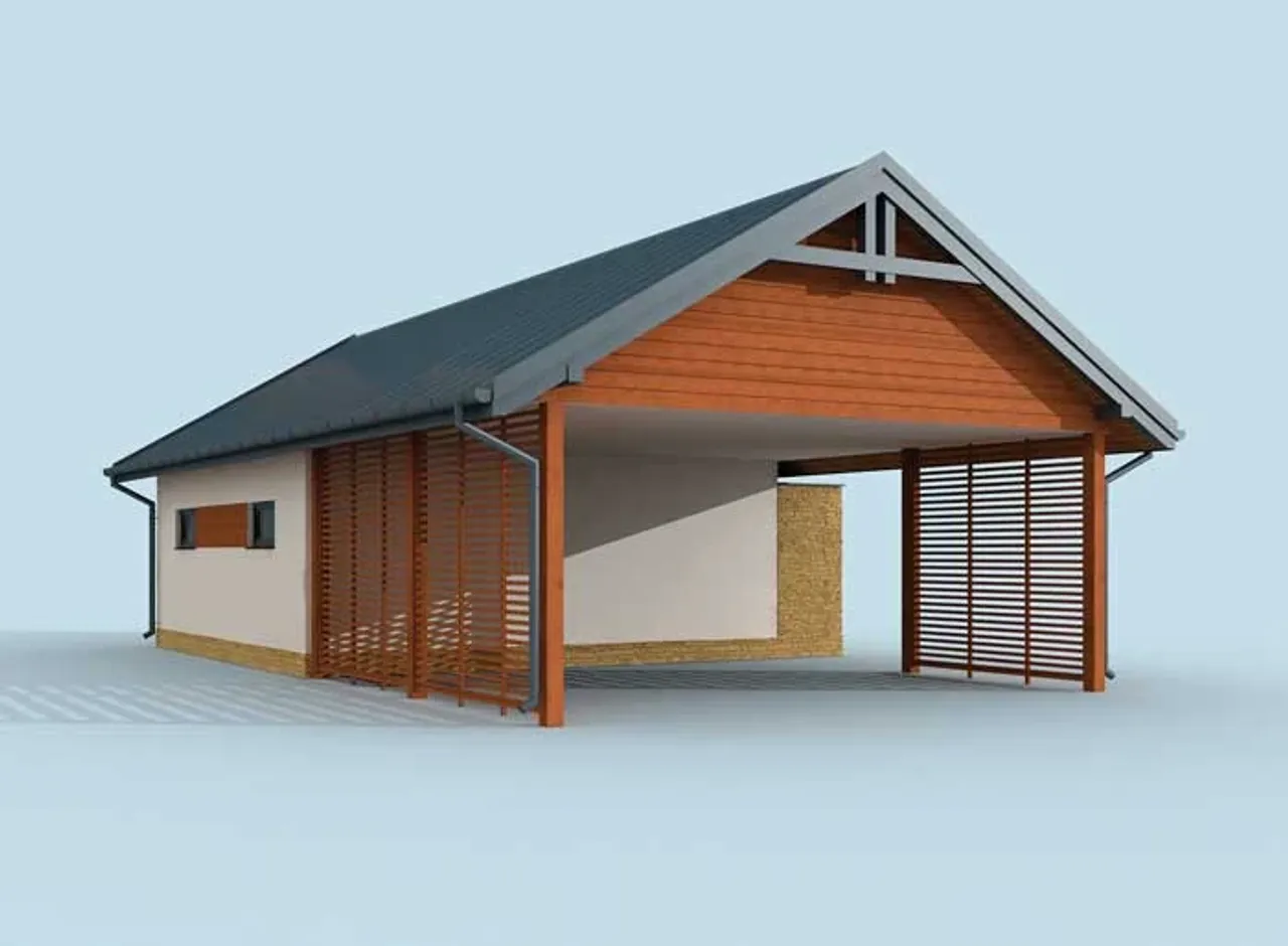 Opis projektu domu G282 szkielet drewniany garaż z wiatą i pomieszczeniami gospodarczymi