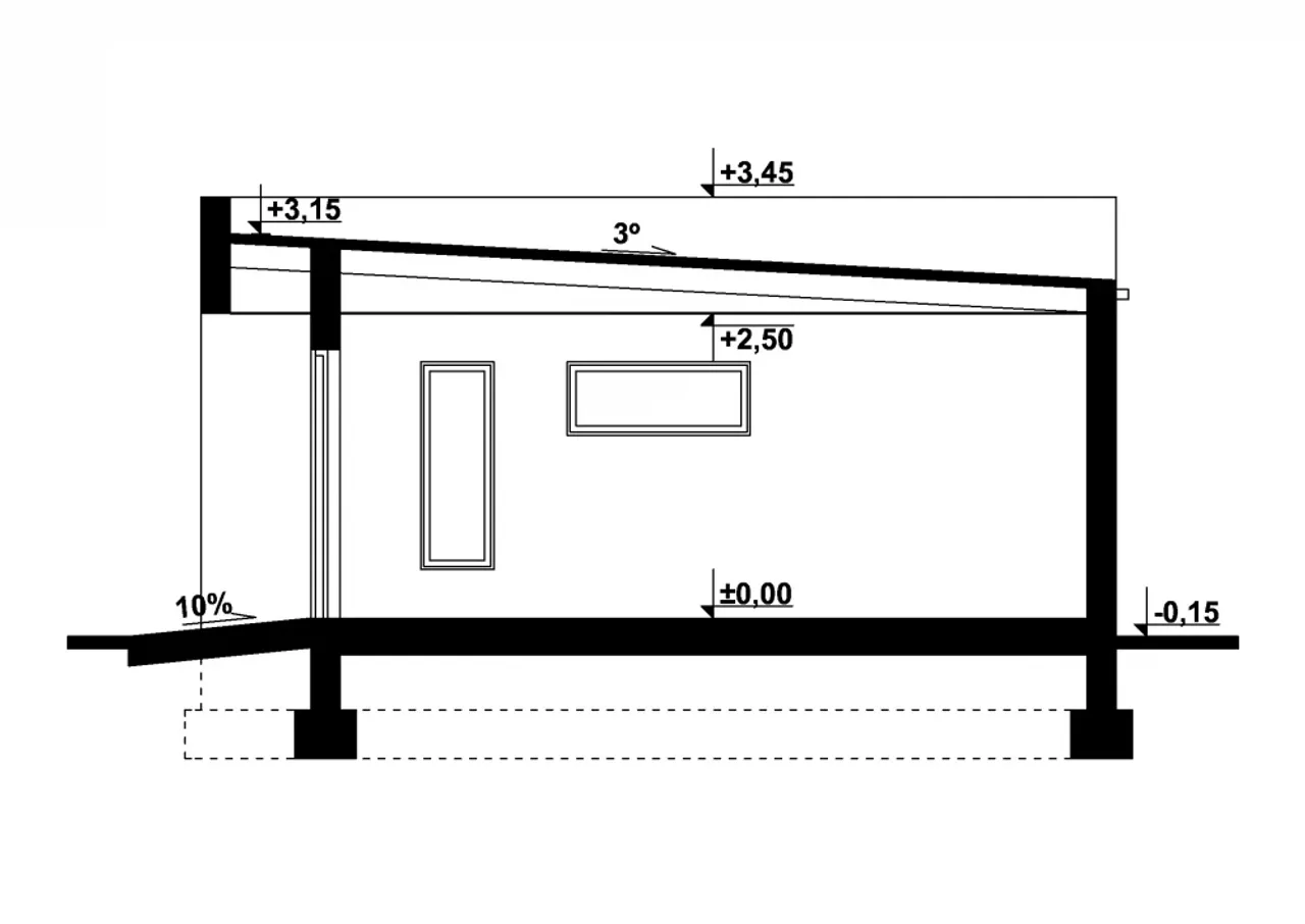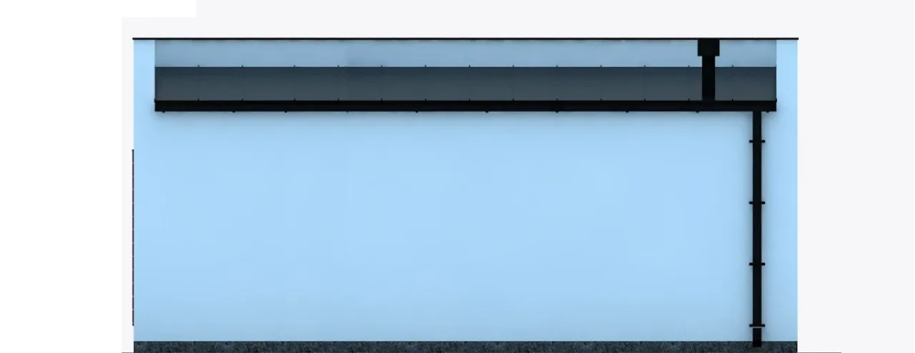 • Więźba dachowa: jednospadowa, drewniana, pokryta blachą trapezową.