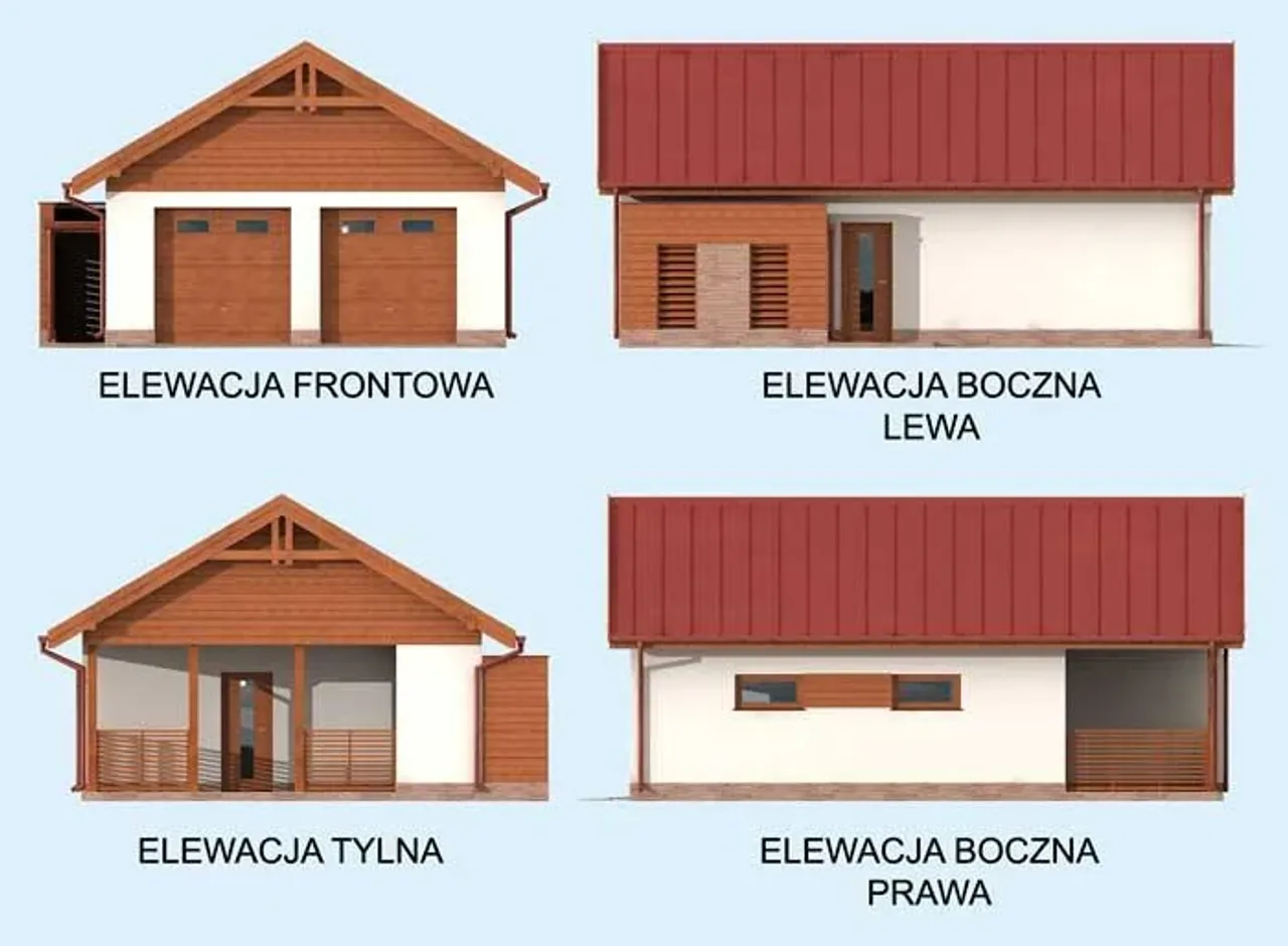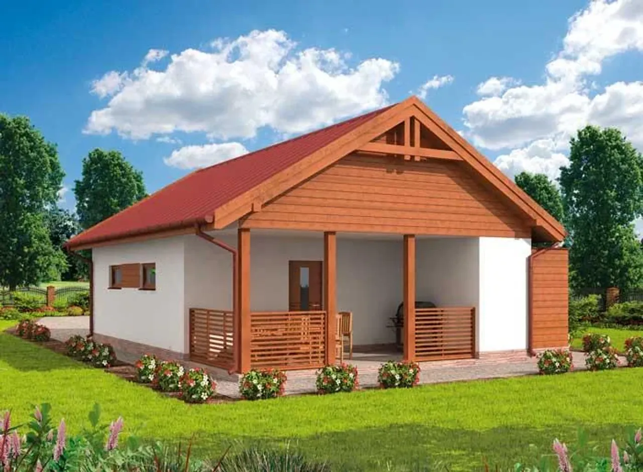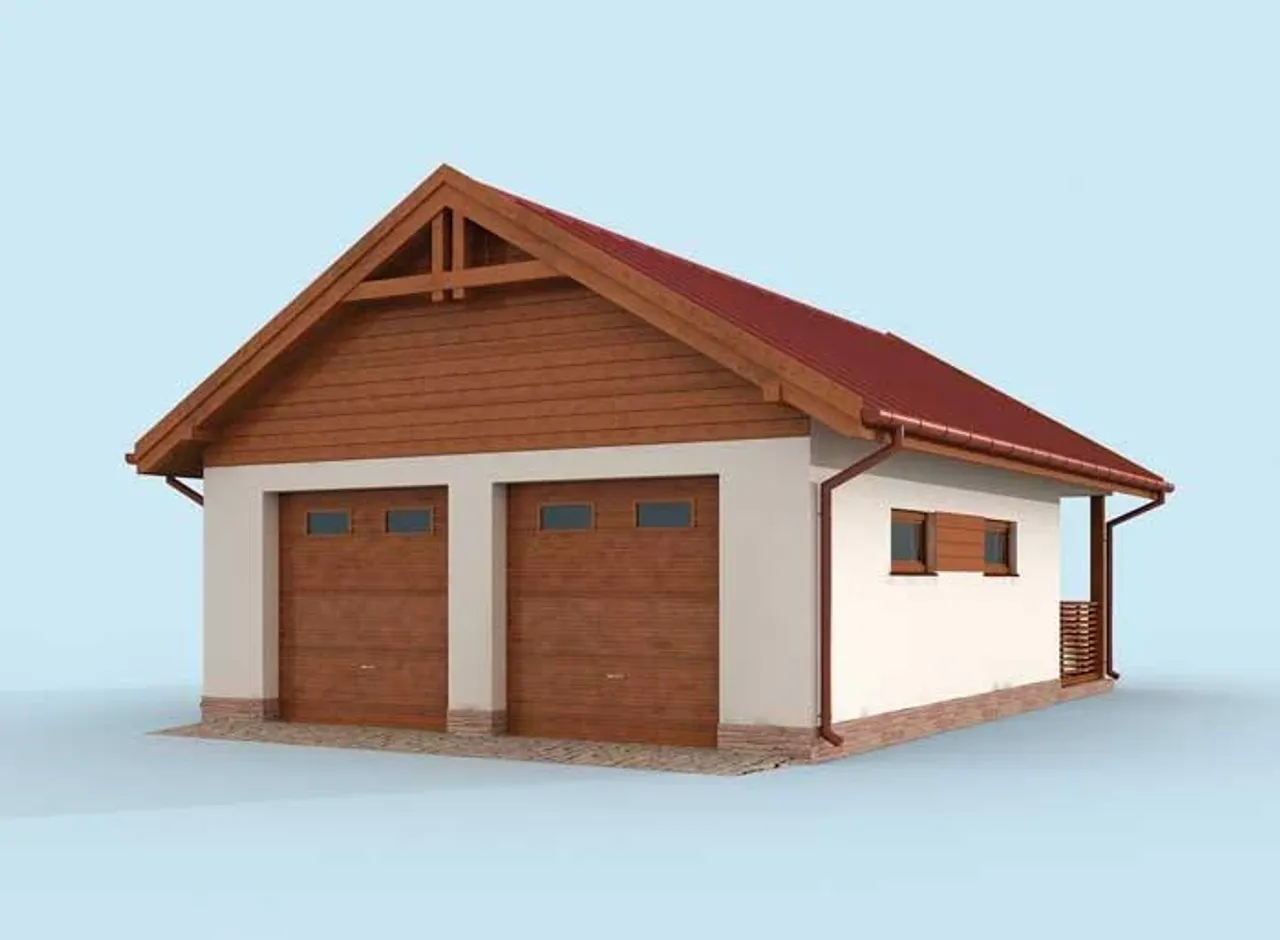 G286 szkielet drewniany garaż dwustanowiskowy z werandą