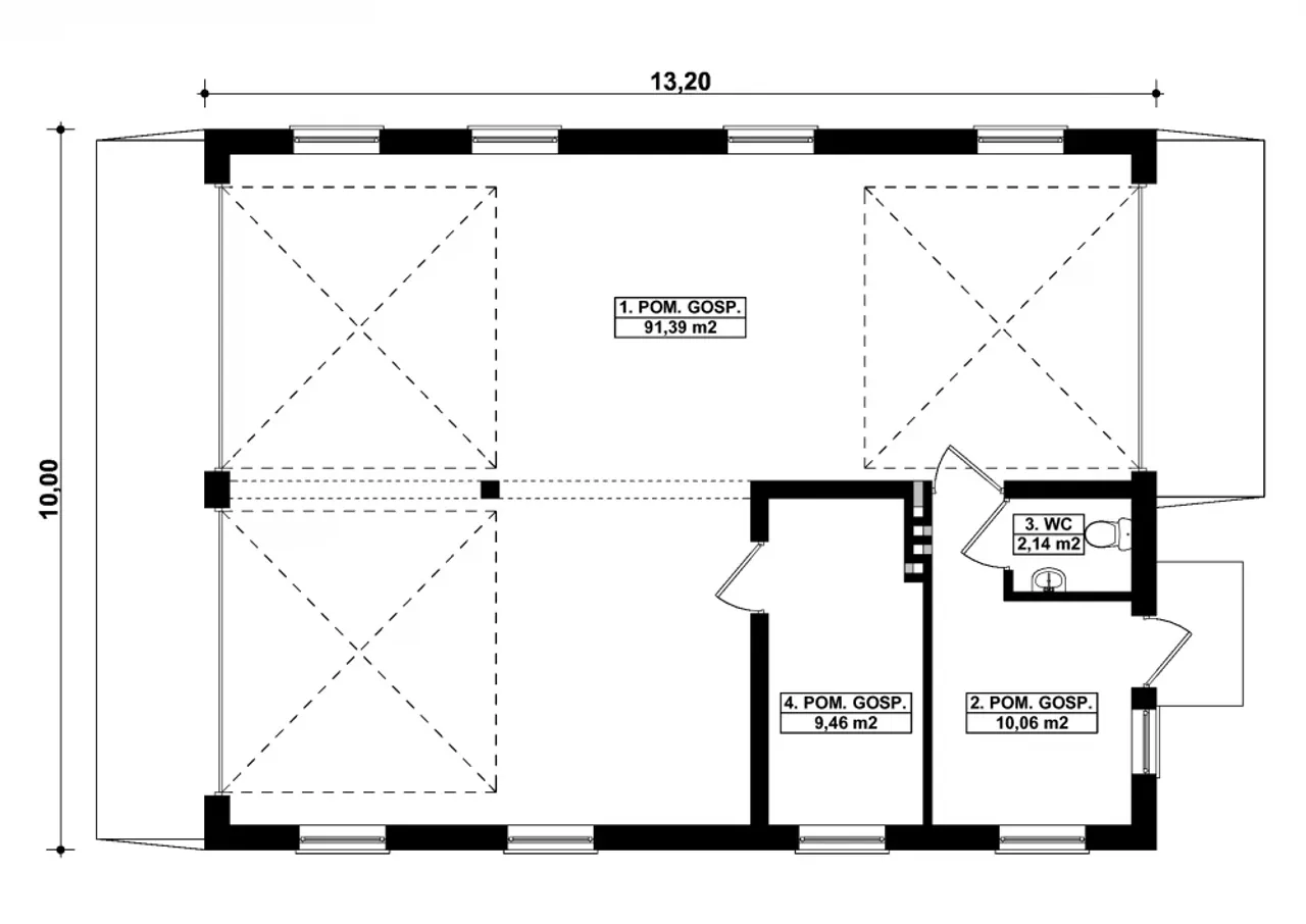 | Długość budynku 13.2 m |