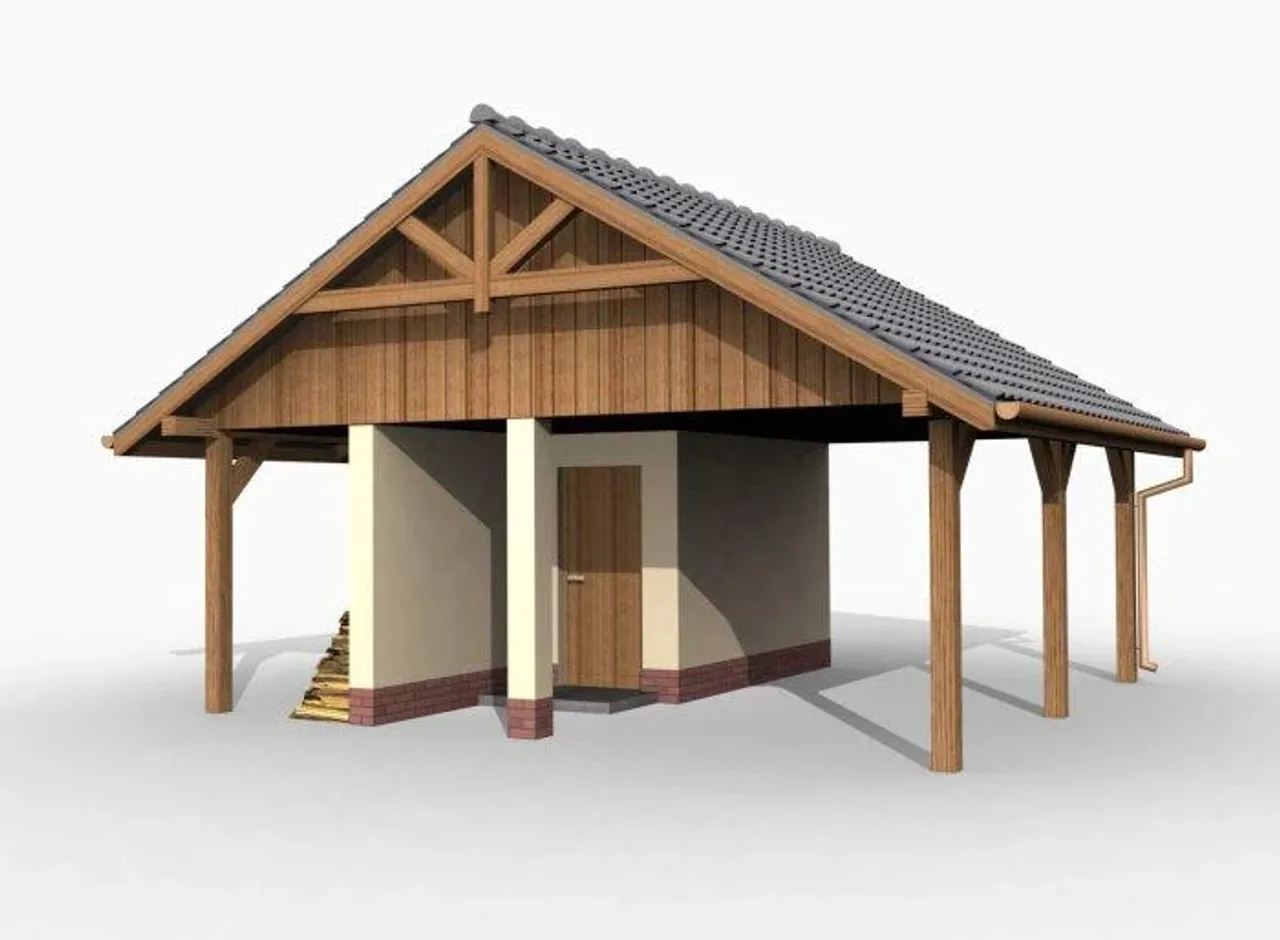| Przestrzeń z pom. gospodarczym, z wiatą/altaną |