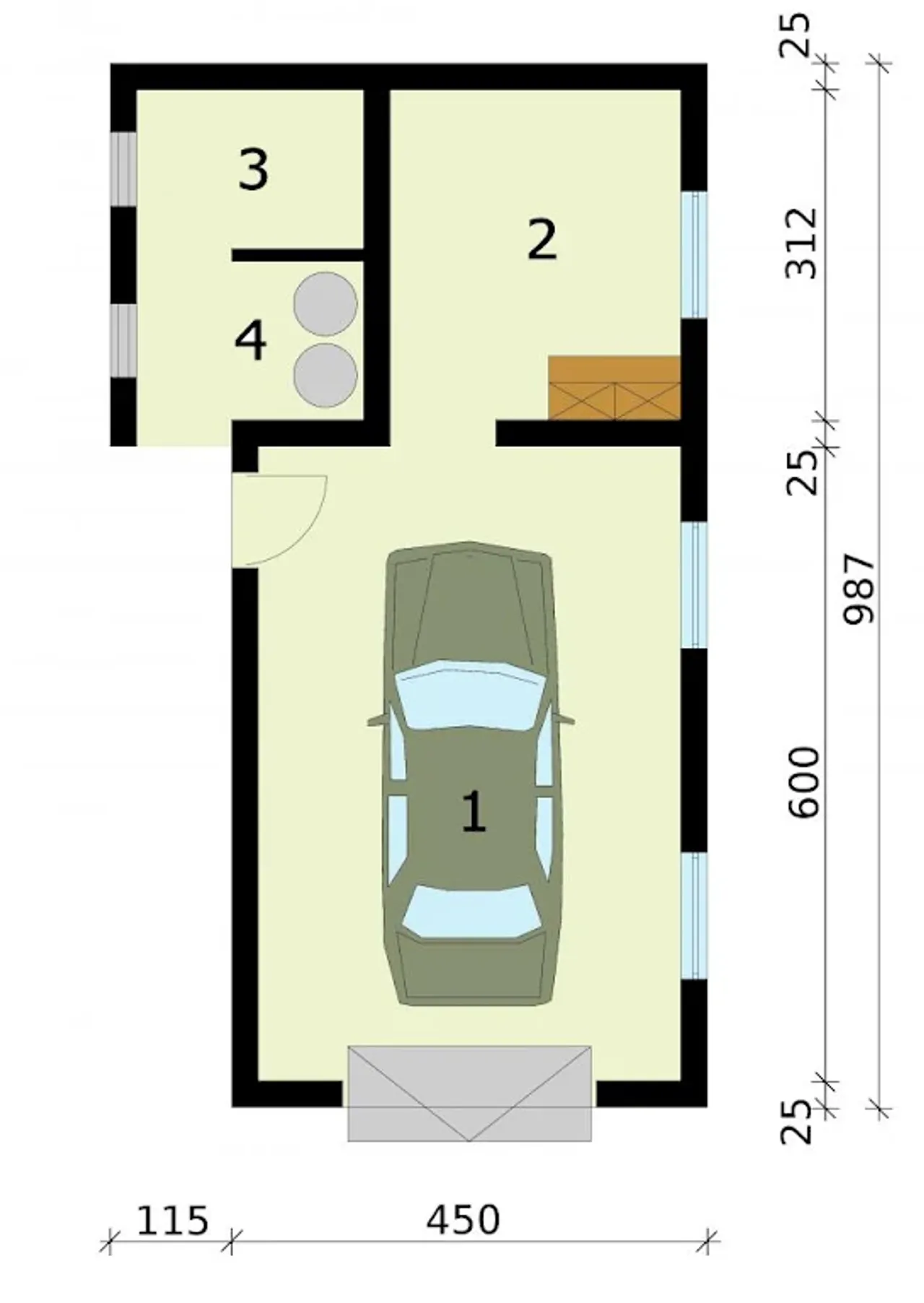 | Przestrzeń z pom. gospodarczym, z drewutnią |