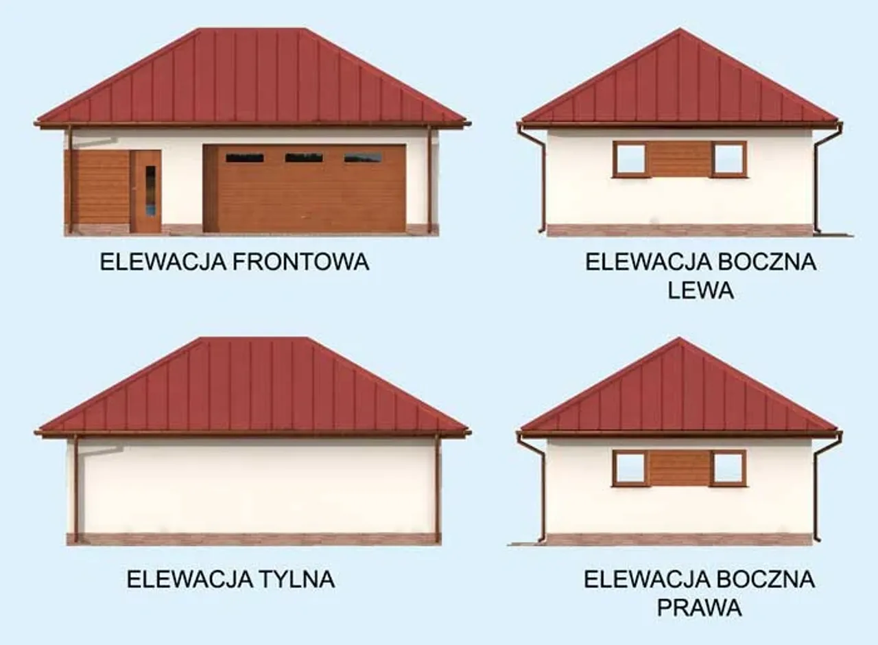 Wypełnij formularz i otrzymaj rysunki w pdf z dokładnymi wymiarami budynku i pomieszczeń (długość, szerokość, wysokość) dla projektu G293 szkielet drewniany garaż dwustanowiskowy