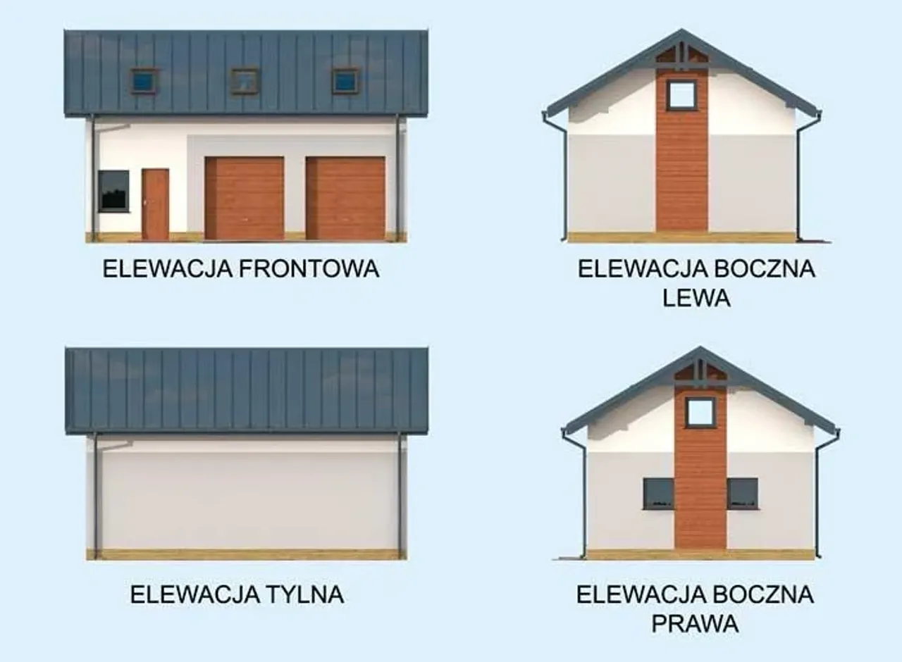 G295 szkielet drewniany garaż dwustanowiskowy z poddaszem użytkowym
