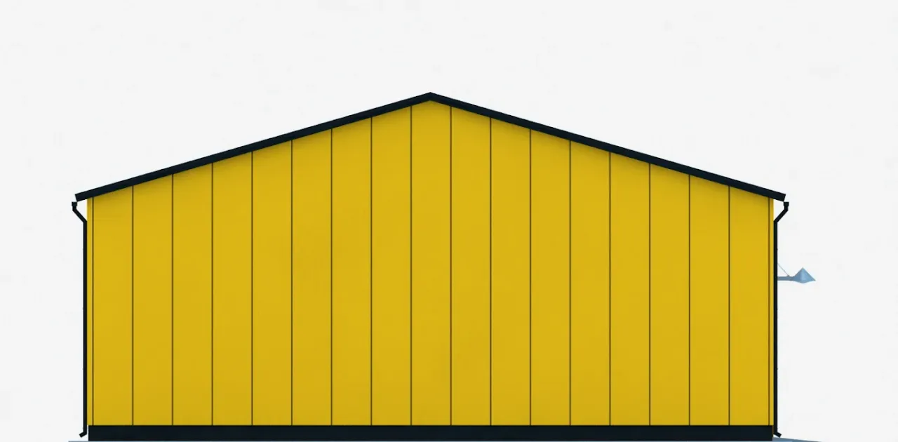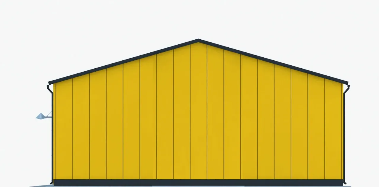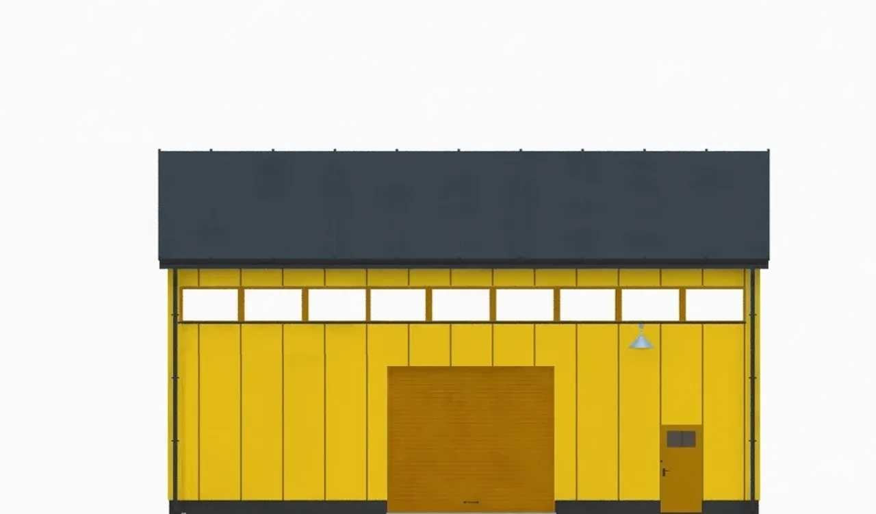 - Więźba dachowa: dwuspadowa, stalowa, pokryta płytą warstwową.