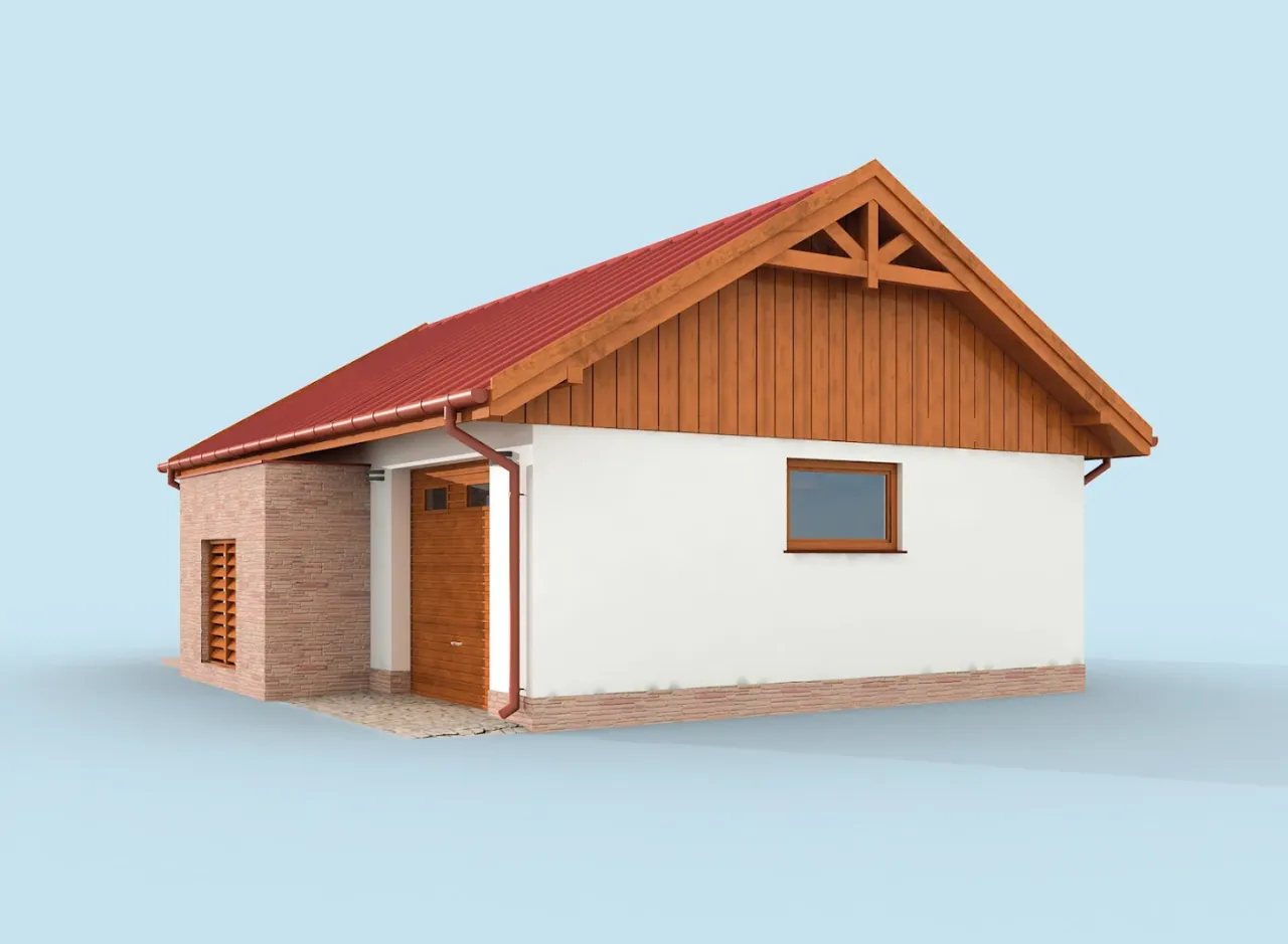 Wypełnij formularz i otrzymaj rysunki w pdf z dokładnymi wymiarami budynku i pomieszczeń (długość, szerokość, wysokość) dla projektu G310 szkielet drewniany jednostanowiskowy z pomieszczenie gospodarczym