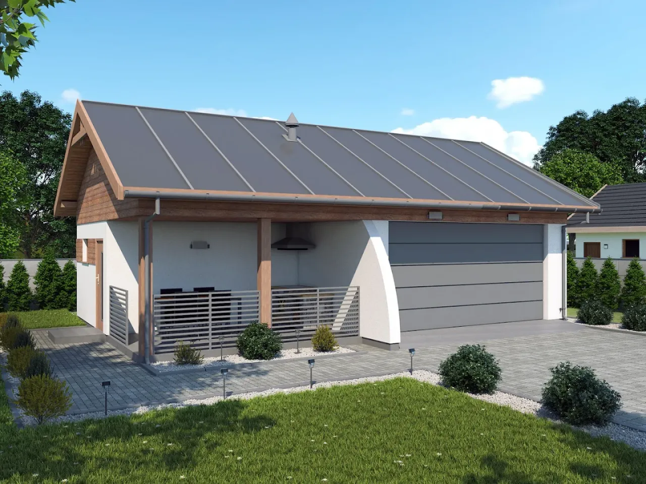 | Przestrzeń z pom. gospodarczym, z wiatą/altaną |
