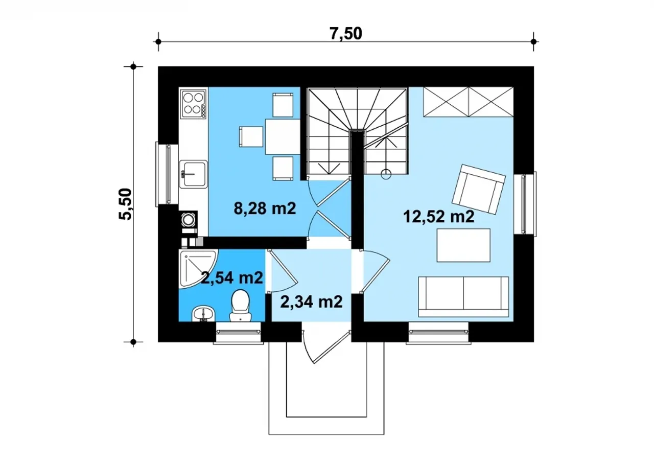 Wypełnij formularz i otrzymaj rysunki w pdf z dokładnymi wymiarami budynku i pomieszczeń (długość, szerokość, wysokość) dla projektu G320 - Budynek rekreacji indywidualnej