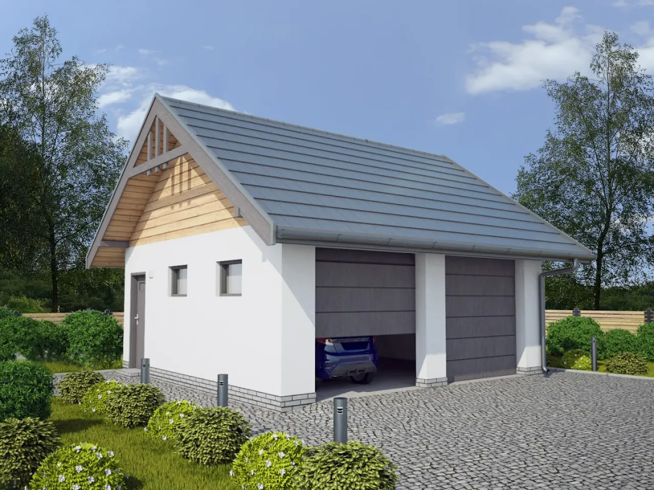 Wypełnij formularz i otrzymaj rysunki w pdf z dokładnymi wymiarami budynku i pomieszczeń (długość, szerokość, wysokość) dla projektu G330c szkielet drewniany, garaż dwustanowiskowy